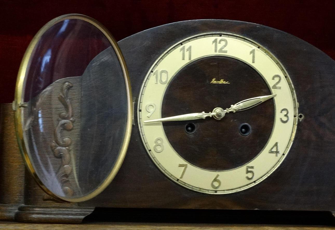 ART-DECO TISCHUHR, HOLZ, um 1930.