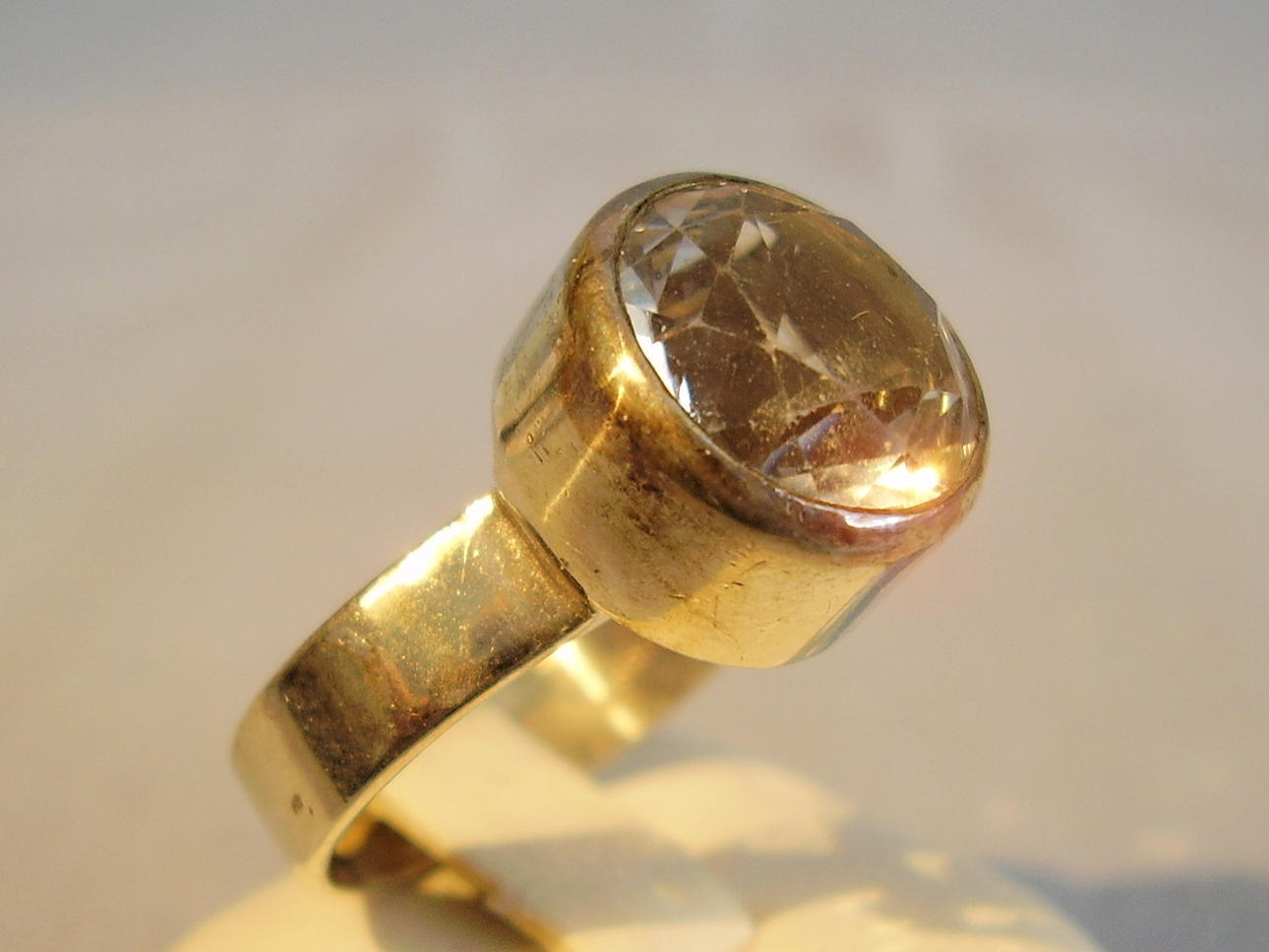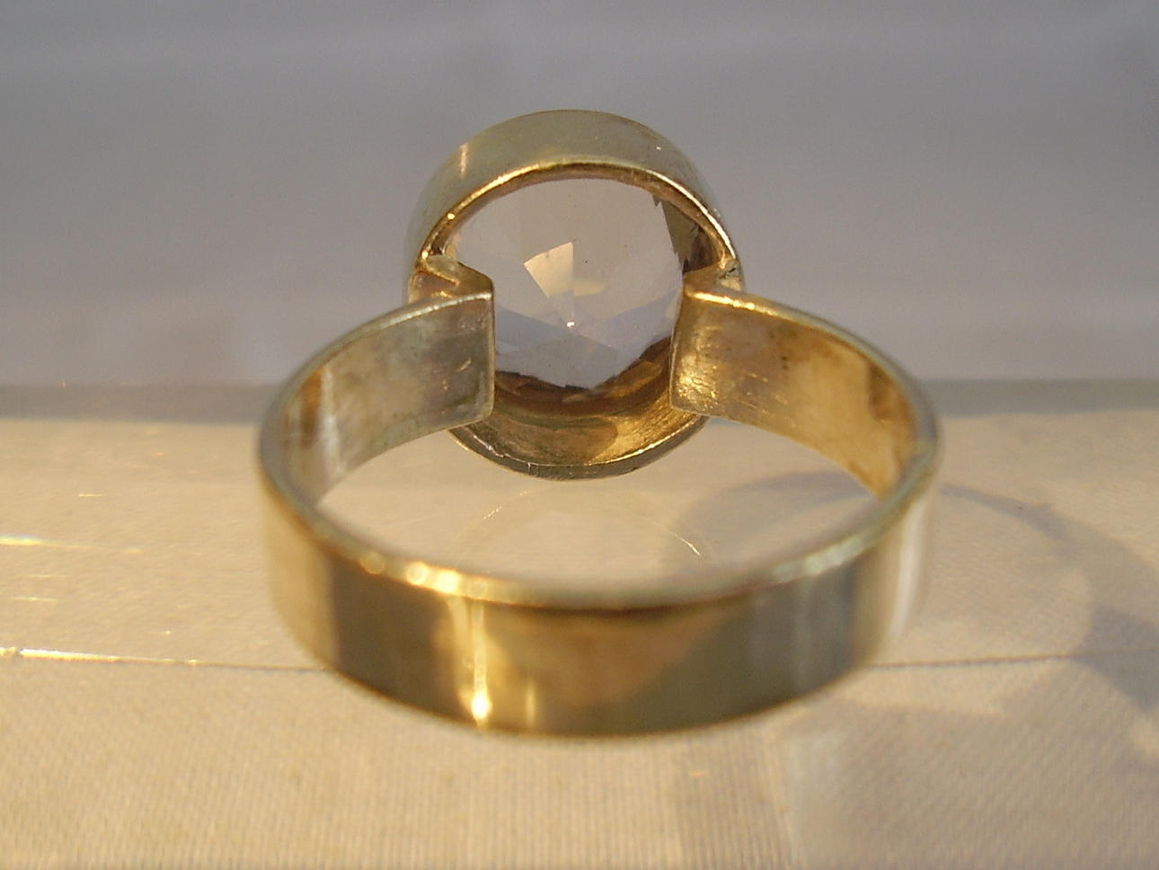 Er ist im skandinavischen Stil gefertigt und mit einem rund facettierten Bergkristall in glatter Zarge besetzt. Die Ring-Schiene ist fein poliert.