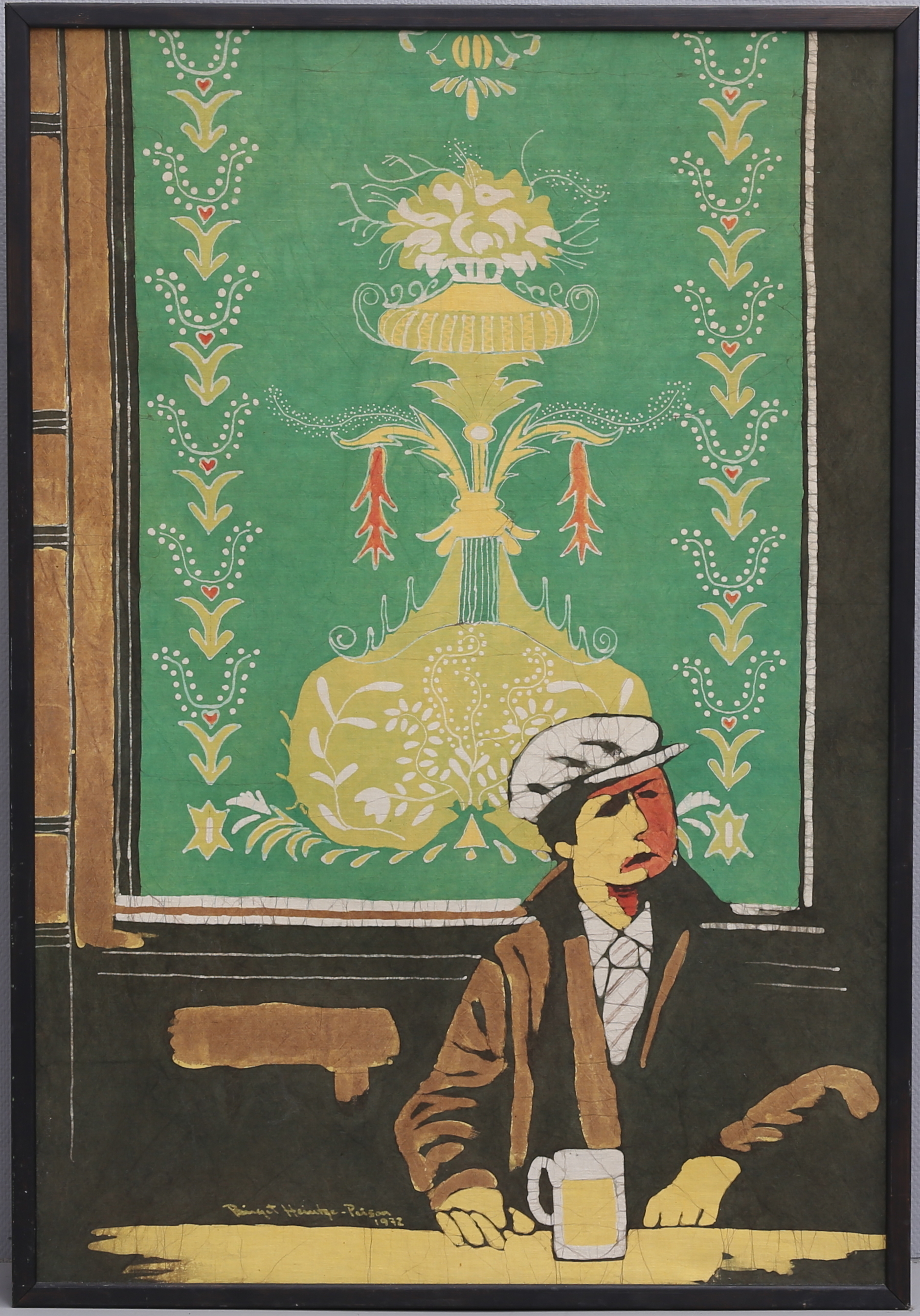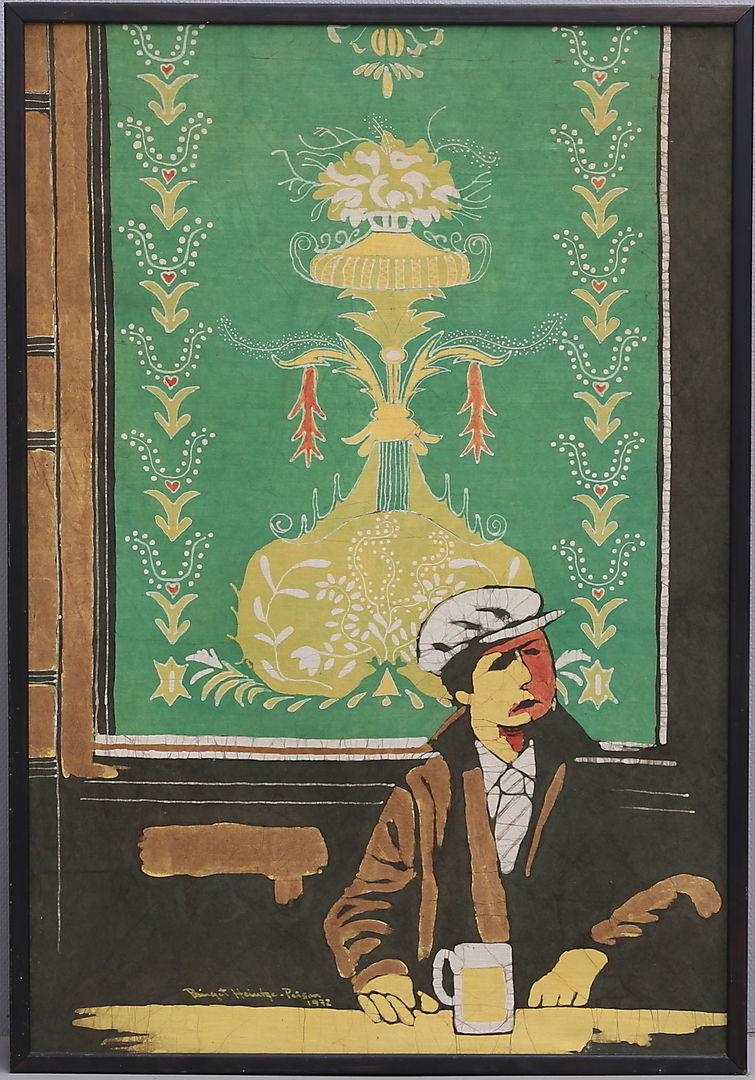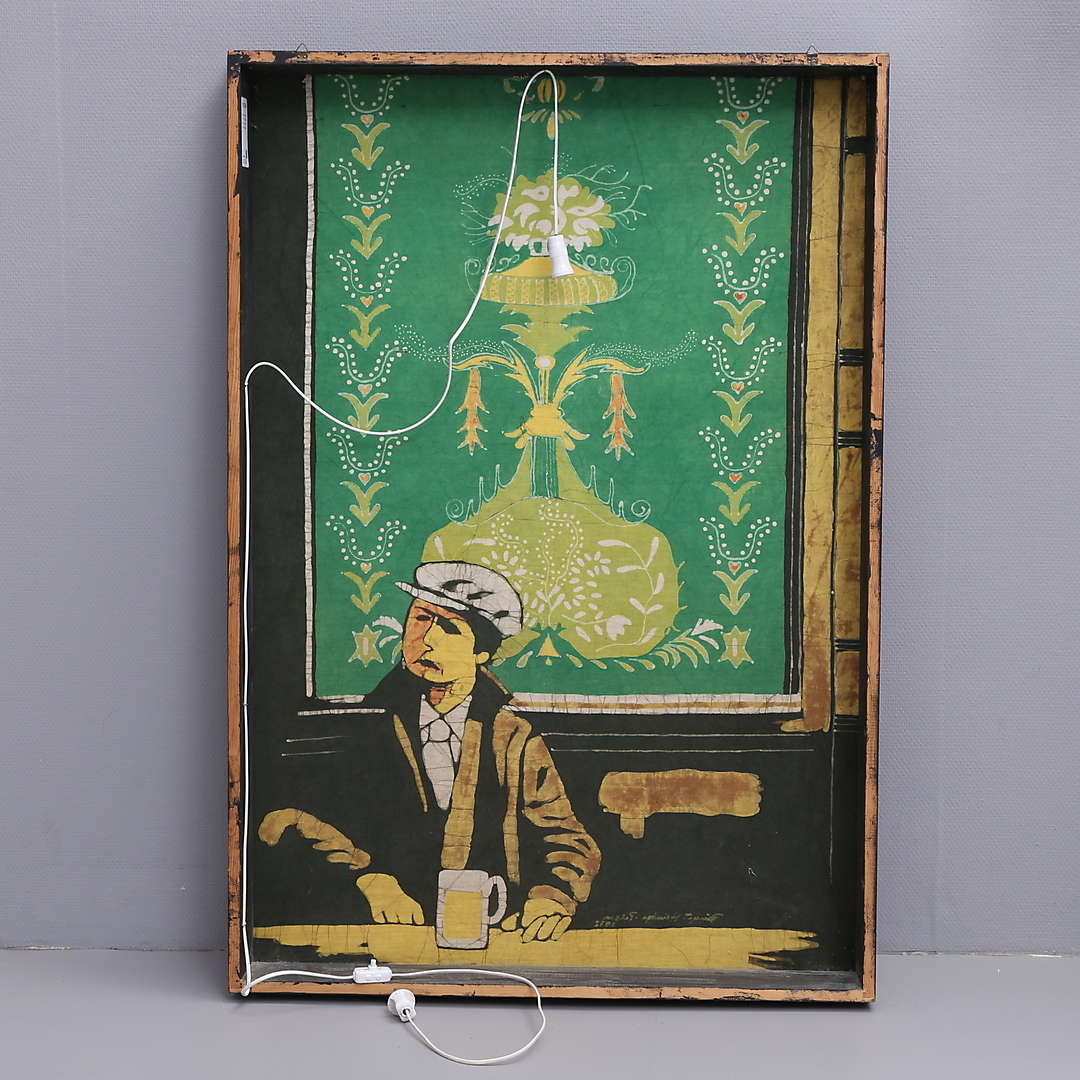 1147245. BIRGIT HEINTZE - PETTERSSON. Mann mit Brille, Batik, signiert.