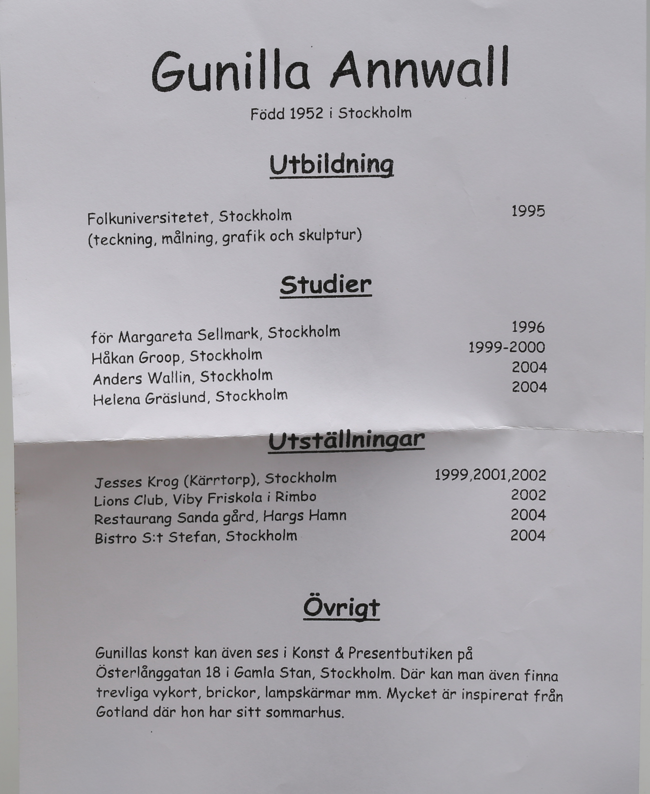 1156432. GUNILLA ANNWALL. Aquarelle, 2 Stück, signiert.