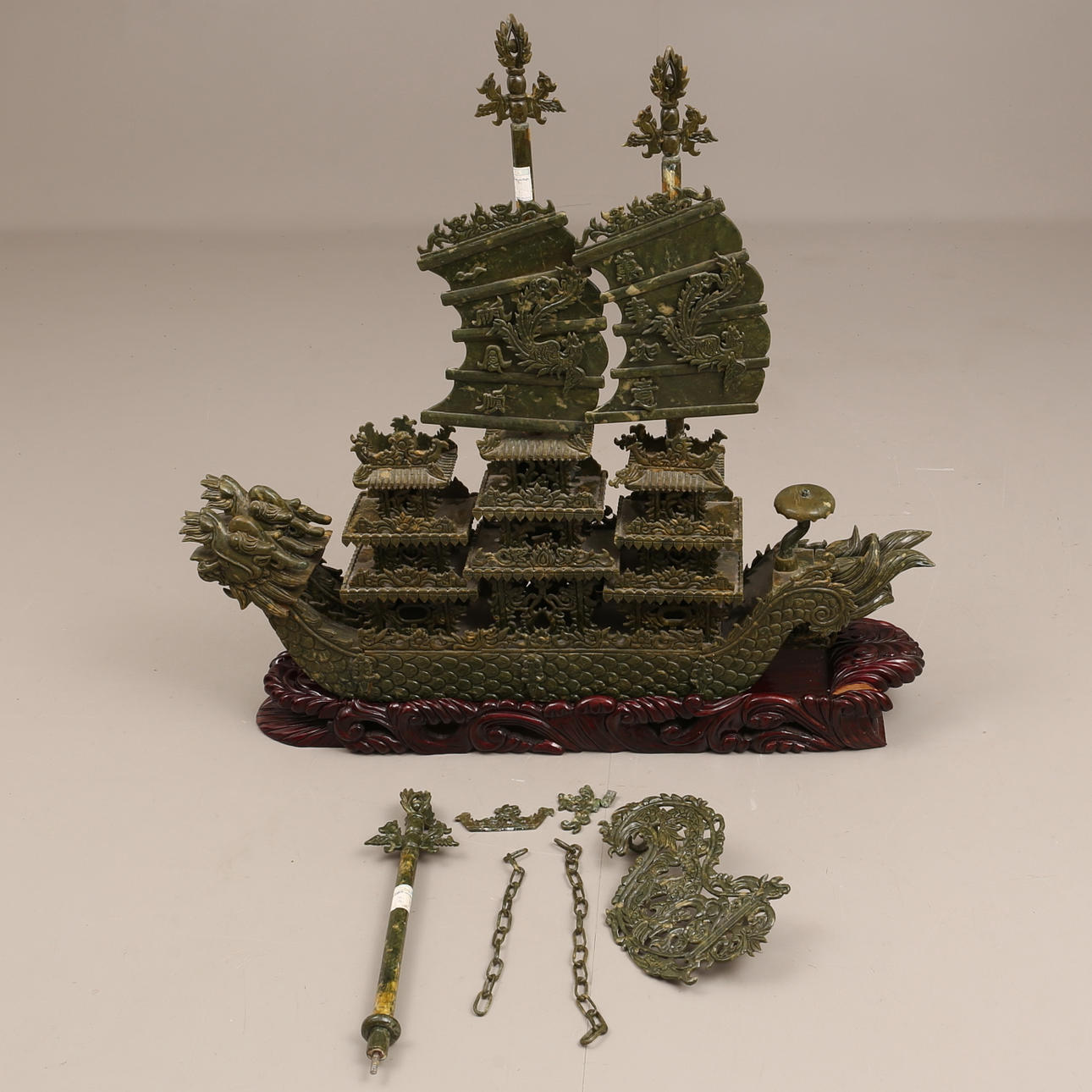 Gesamthöhe inkl. Sockel ca. 102 cm, Länge ca. 104 cm.
