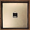 Holzrahmen mit Rand und Ziffern aus gelbem Metall vor schwarzem Hintergrund. 38 x 38 cm, Tiefe 5 cm.