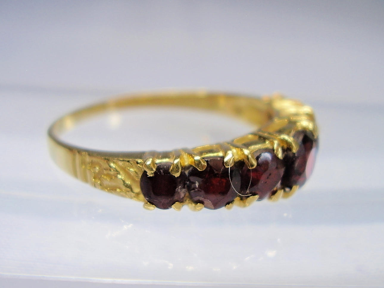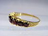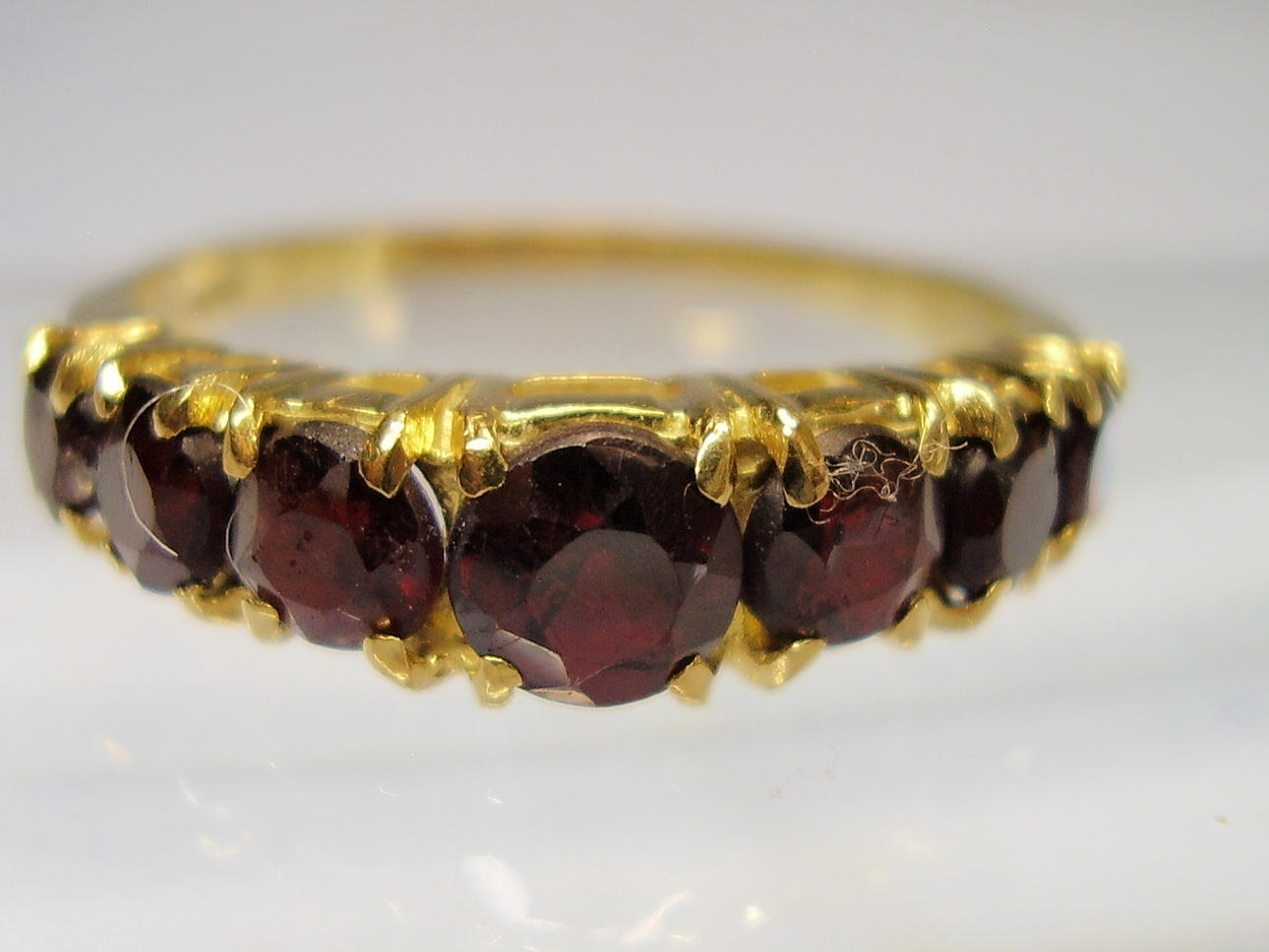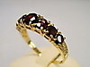 Der Ringkopf ist mit 7 rund facettierten, blutroten, böhmischen Granaten in gestaffelter Größe besetzt.