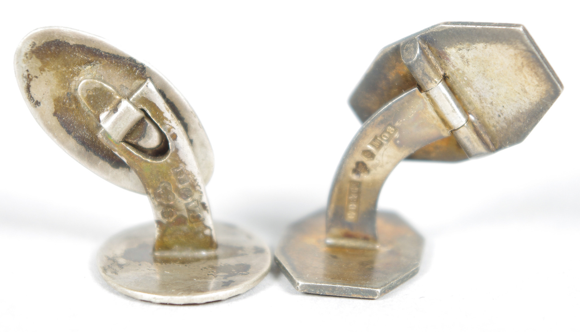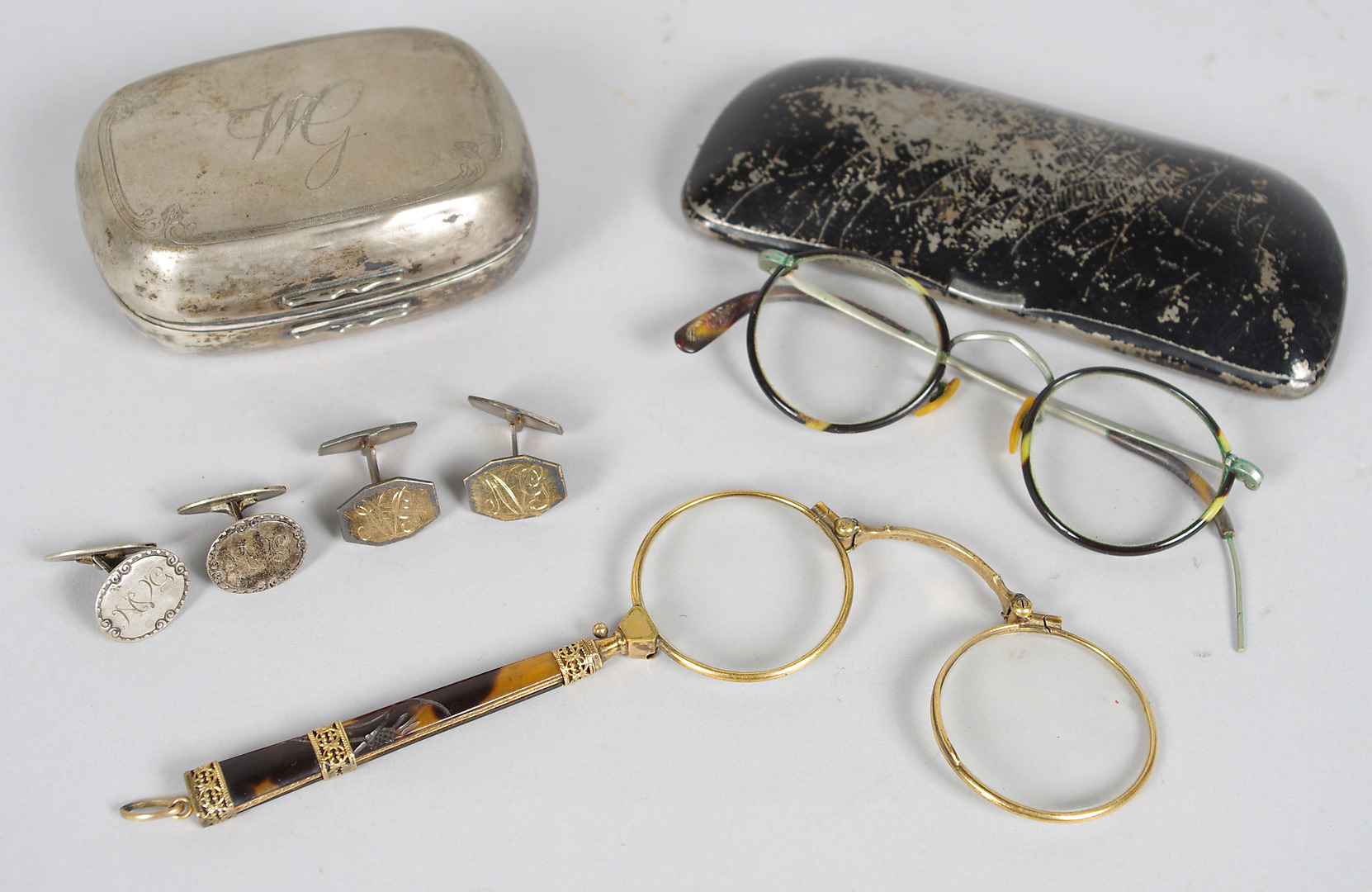 117326. SILBERNE DOSE, MANSCHETTENKNÖPFE UND GLÄSER.