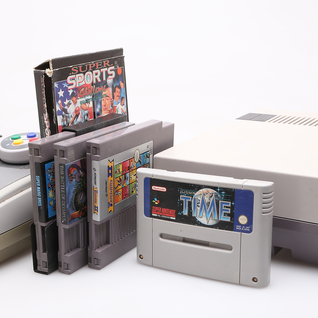 1174395. SPIELKONSOLE, 2 Stück, Super Nintendo, Nintendo NES.