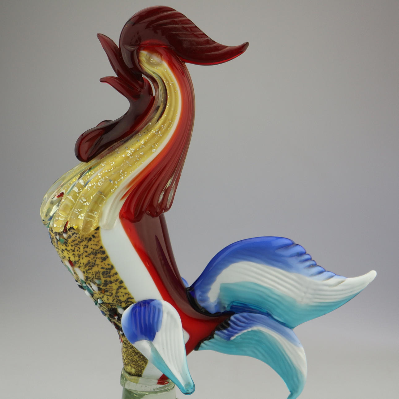 Vintage Murano Glas Hahn, circa 1950, Höhe: 30 cm, am Bauch mit Glassteinen versehen, sehr selten da sehr alt, Rarität.