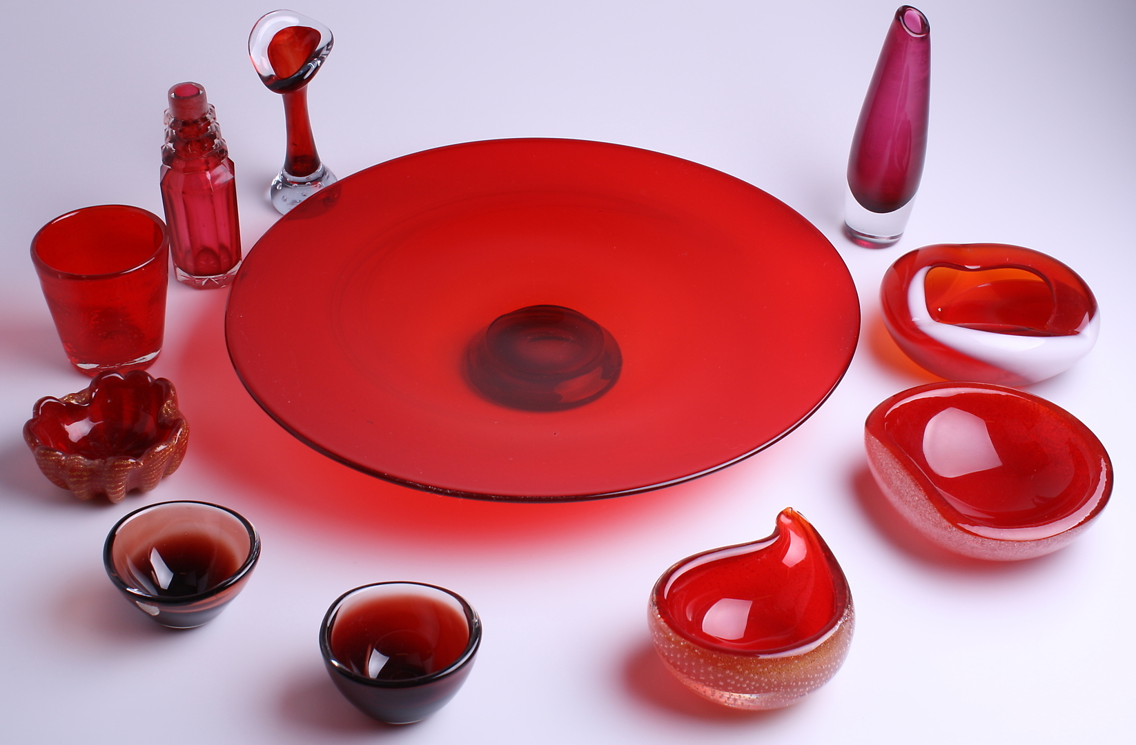 118145. GLASOBJEKTE, 11 Stück, rot.