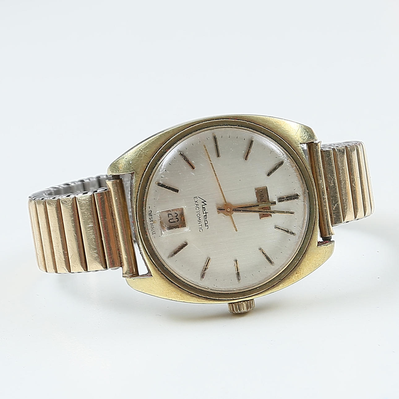 Herrenuhr Vulcain Meteor Exactomatic Swiss Made 35 mm ohne Krone wohl Gold auf Stahl.