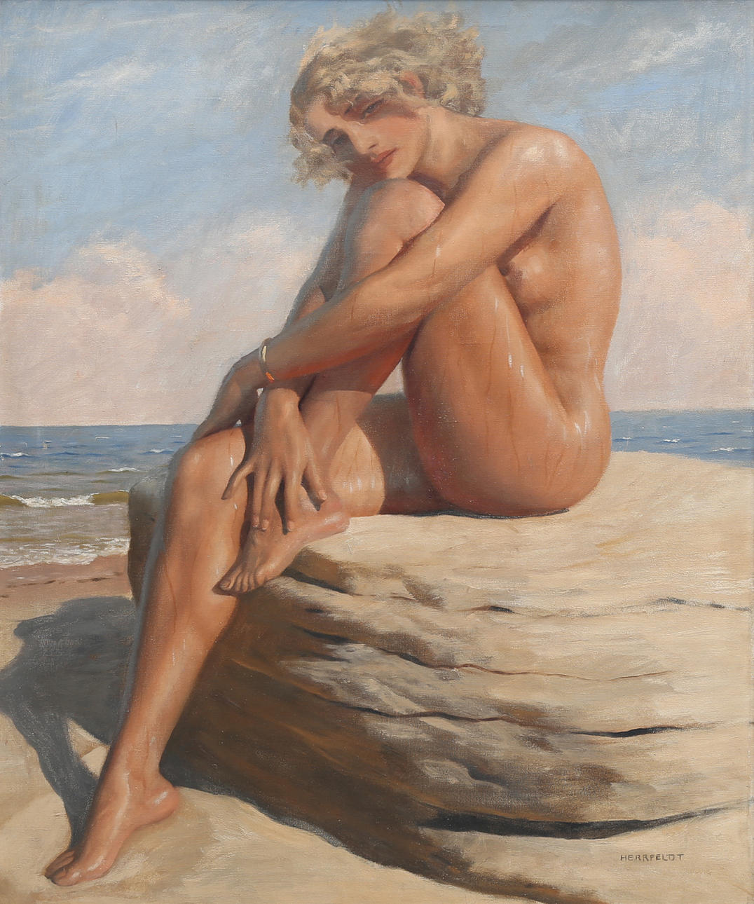 MARCEL RENÉ HERRFELDT. BADEZIMMER AUF EINEM SANDSTRAND.