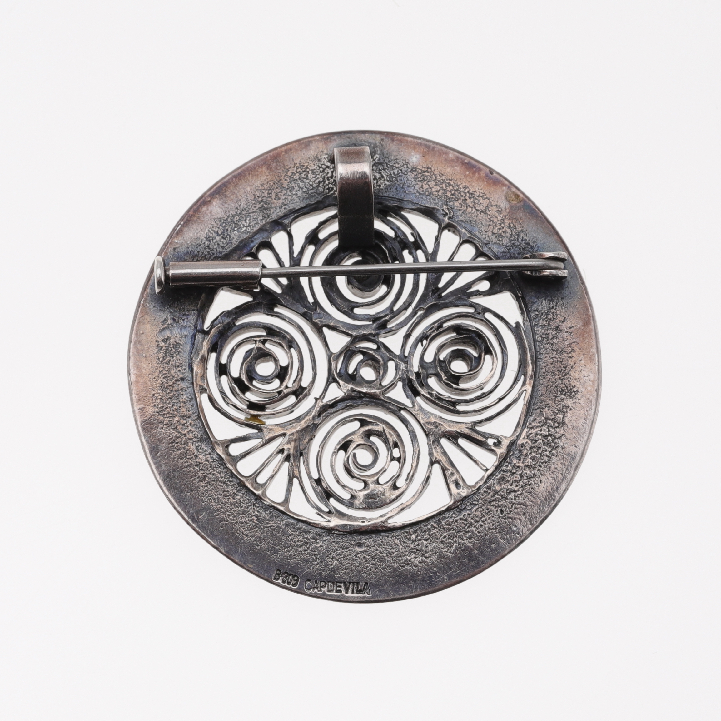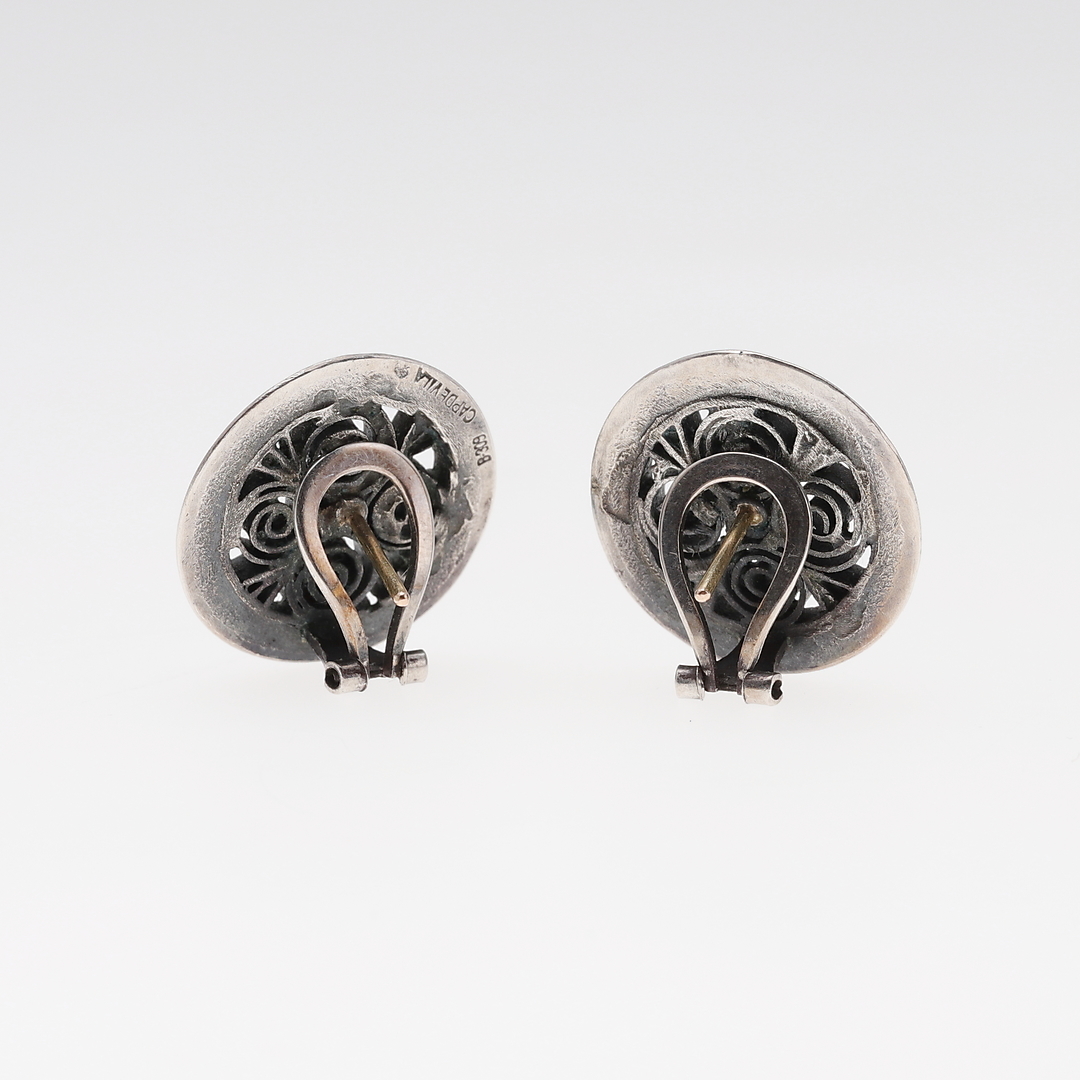 1184102. JOYERÍA CAPDEVILA. Brosche - Anhänger und Ohrringe in Silber.