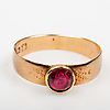 1186246. RING, 14 Karat Gold mit rotem Stein.