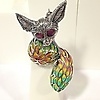 Der Körper dieses Fuchses ist mit orangefarbener, grüner und gelber Emaille verziert.