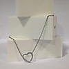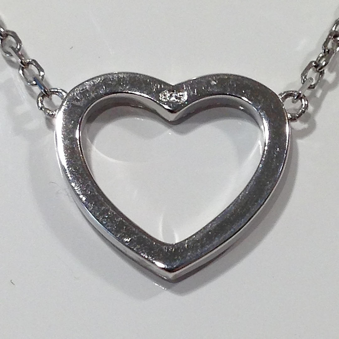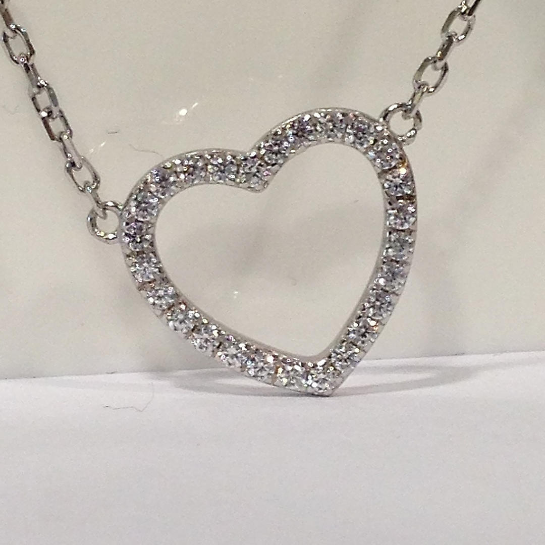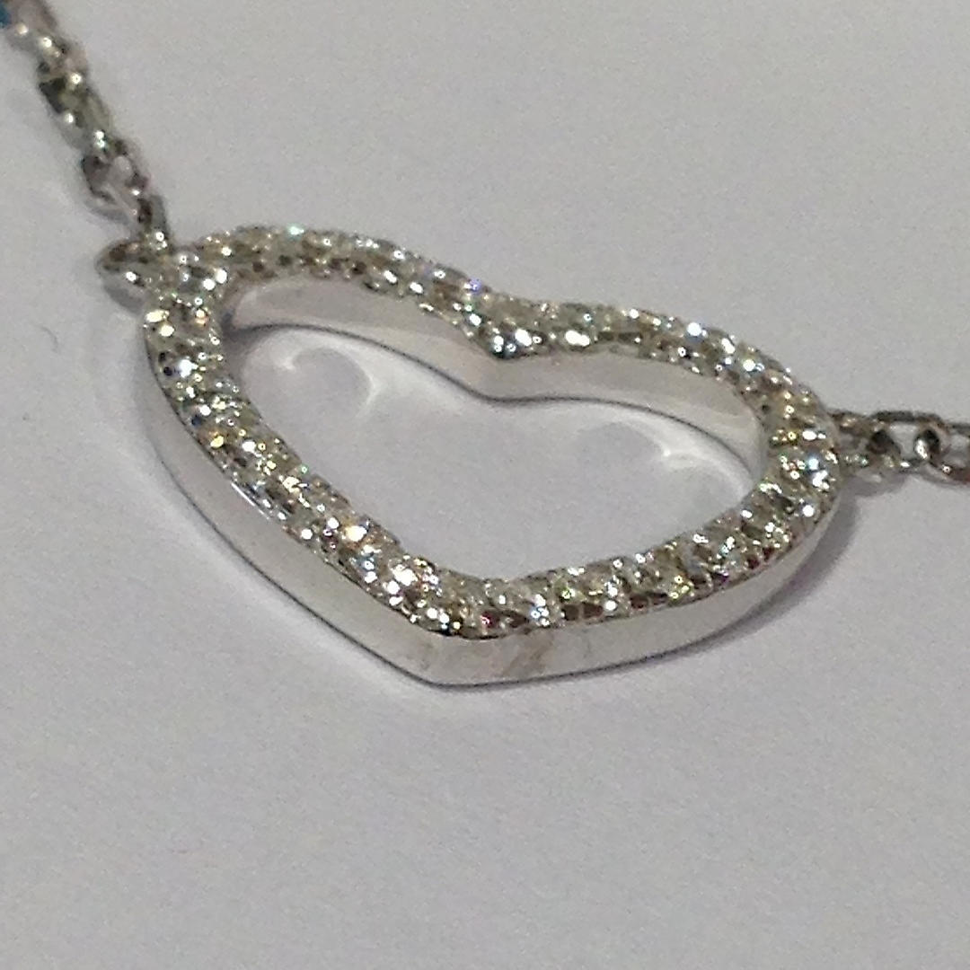 Der herzförmige Anhänger dieser Halskette ist mit kleinen runden weißen Zirkonia-Steinen im Brillantschliff besetzt.