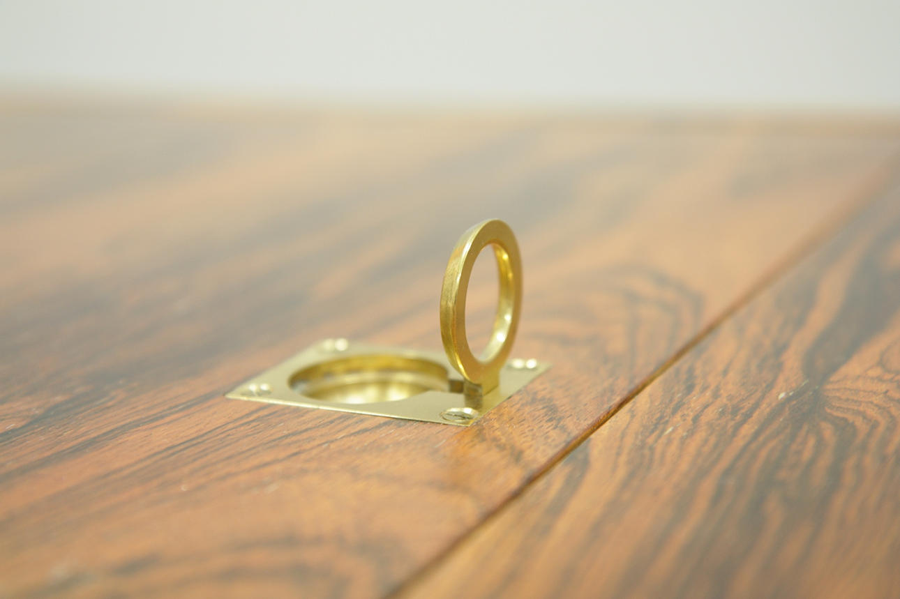 Jacaranda-Geist. Beschläge aus Messing. Regale aus Glas. Auf Rädern. Länge 70, Breite 70 und Höhe 46 cm.