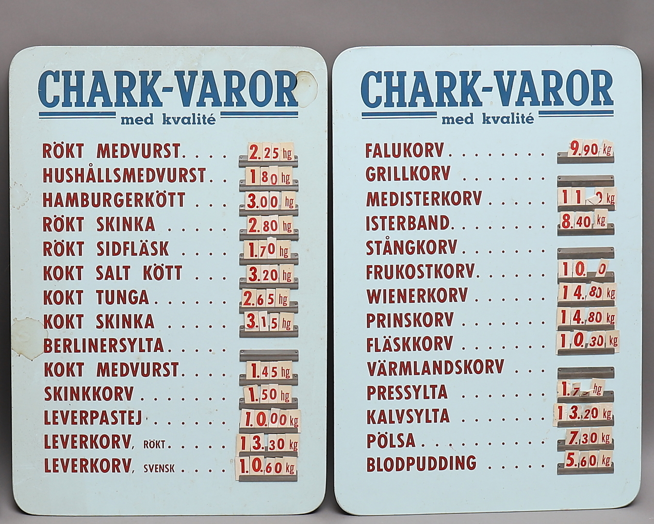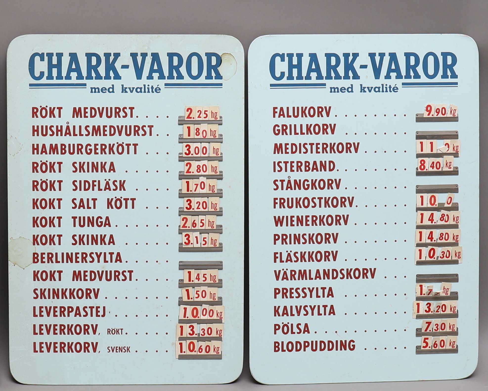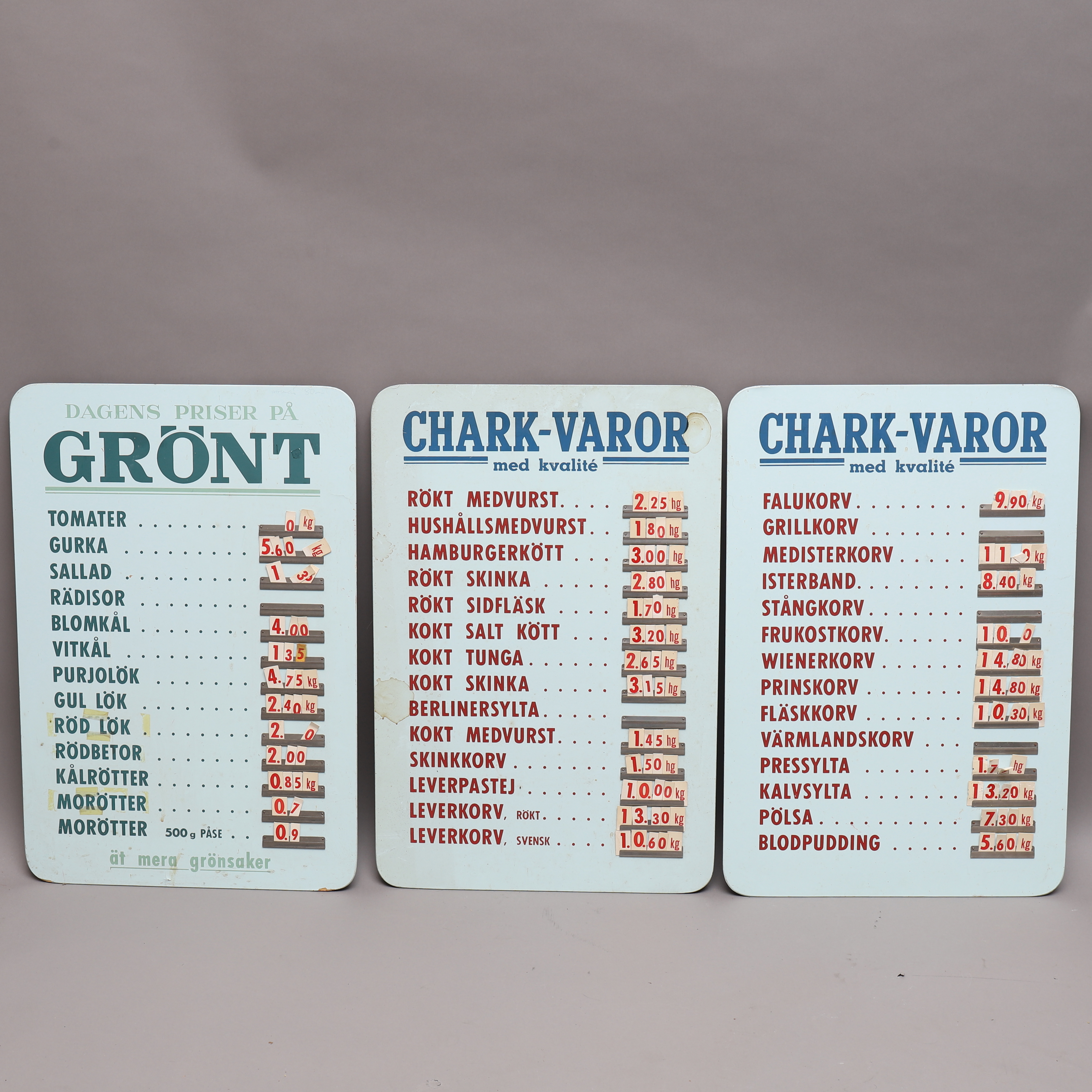 1199776. ZEICHEN, 3 Stück, Preislisten, Chark Waren und Gemüse.