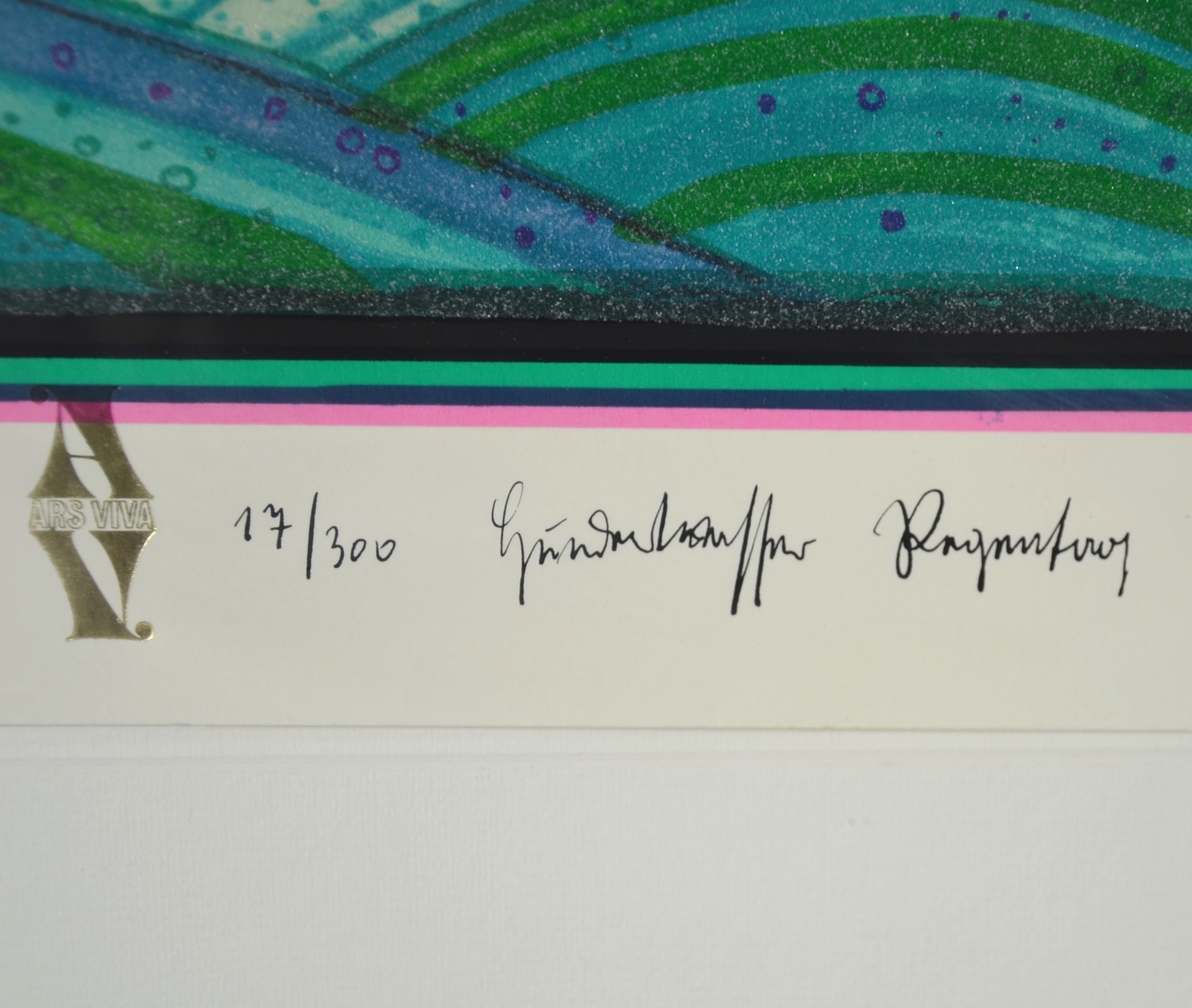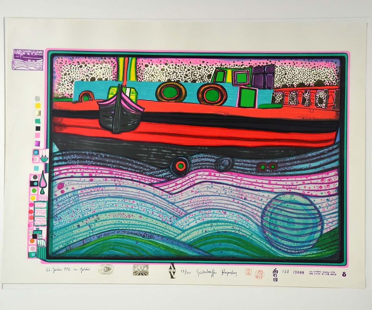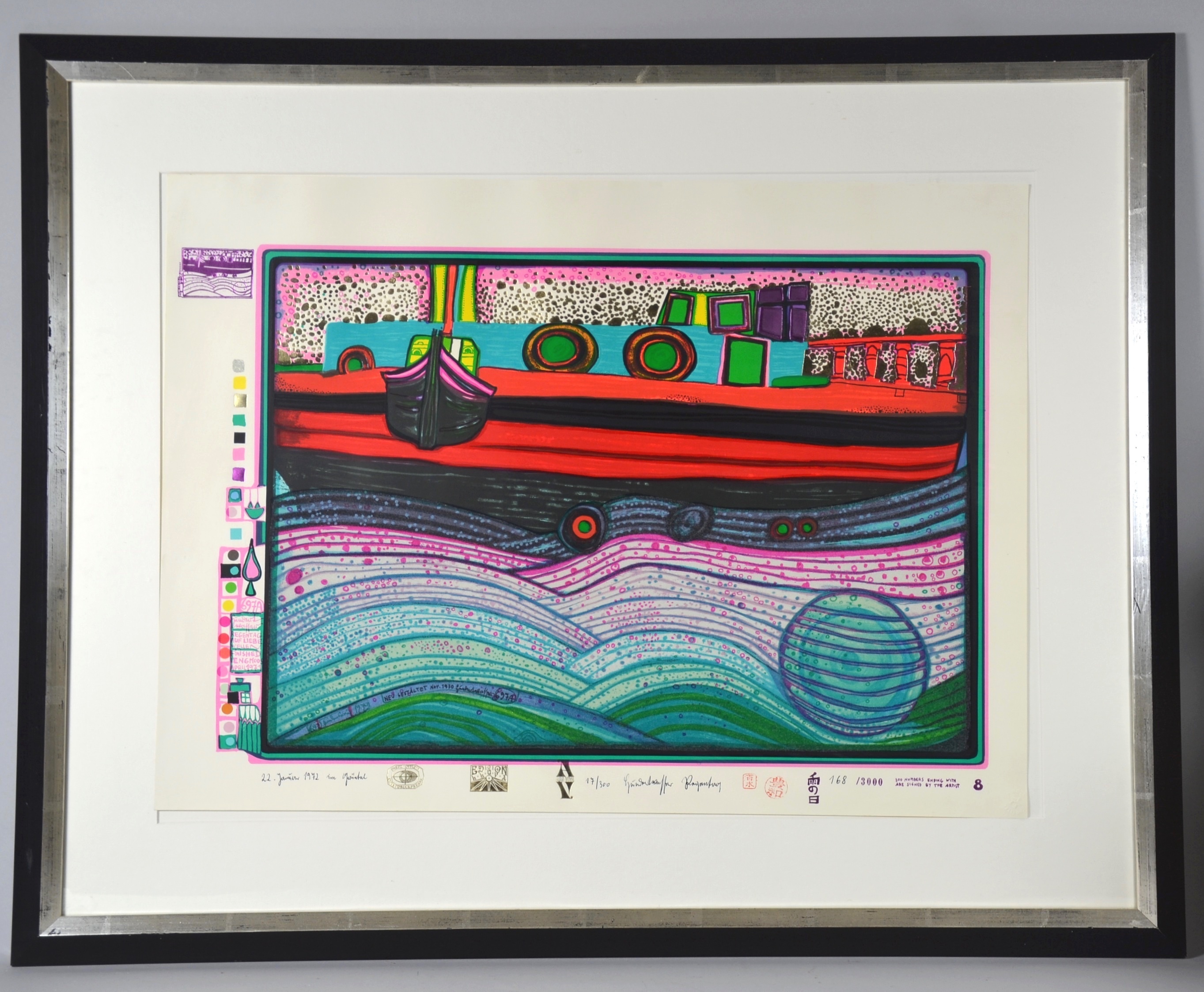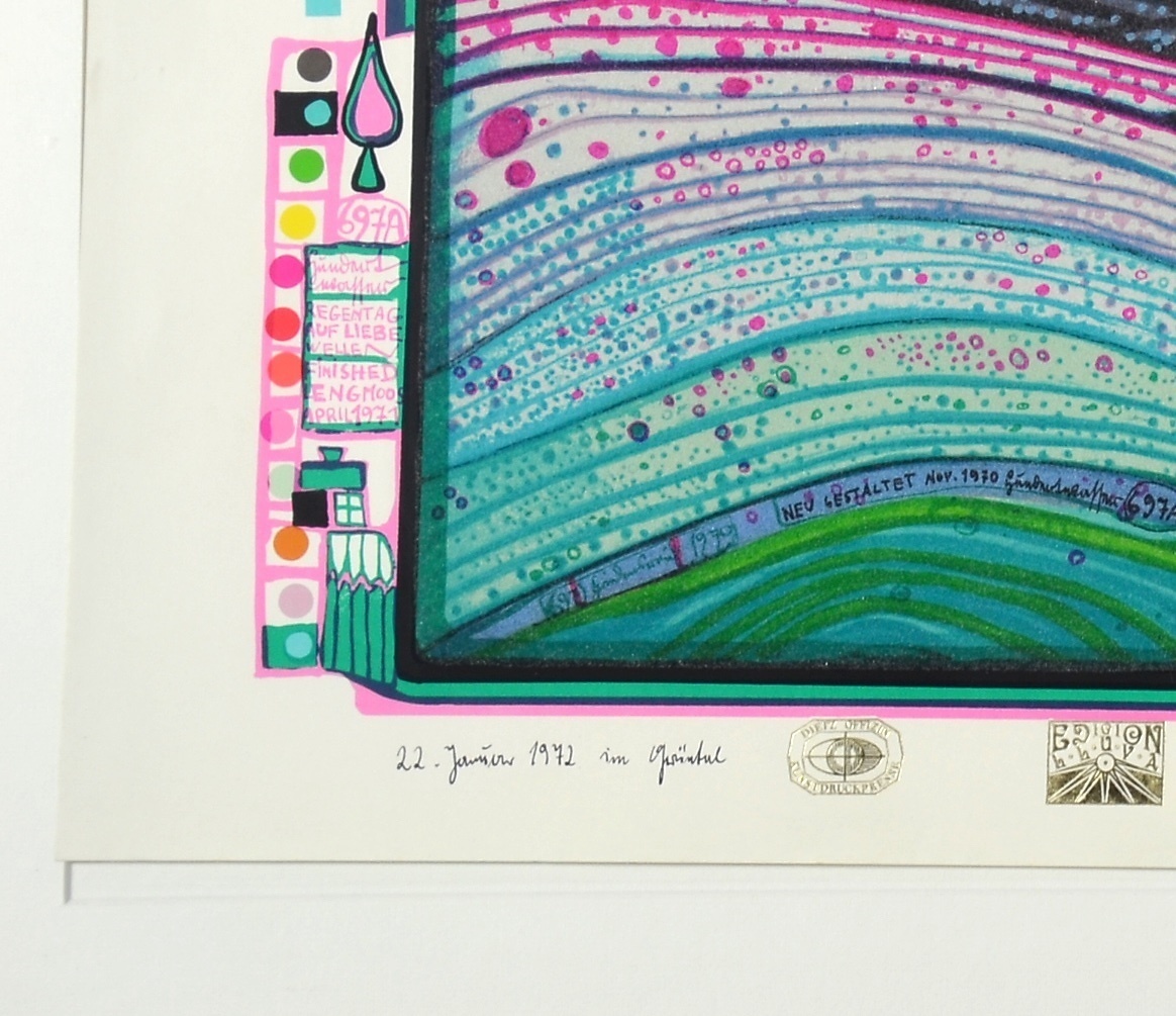 1202140. FRIEDENSREICH HUNDERTWASSER. REGENTAG AUF LIEBE WELLEN HANDSIGNIERT.