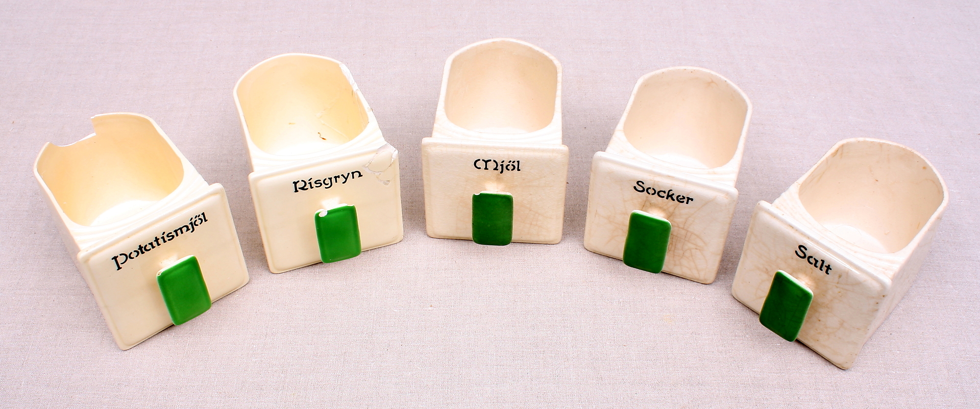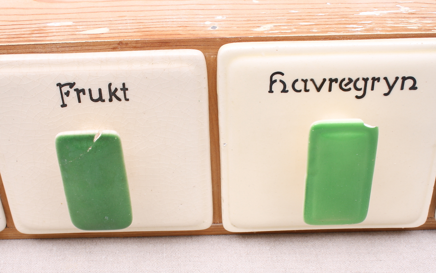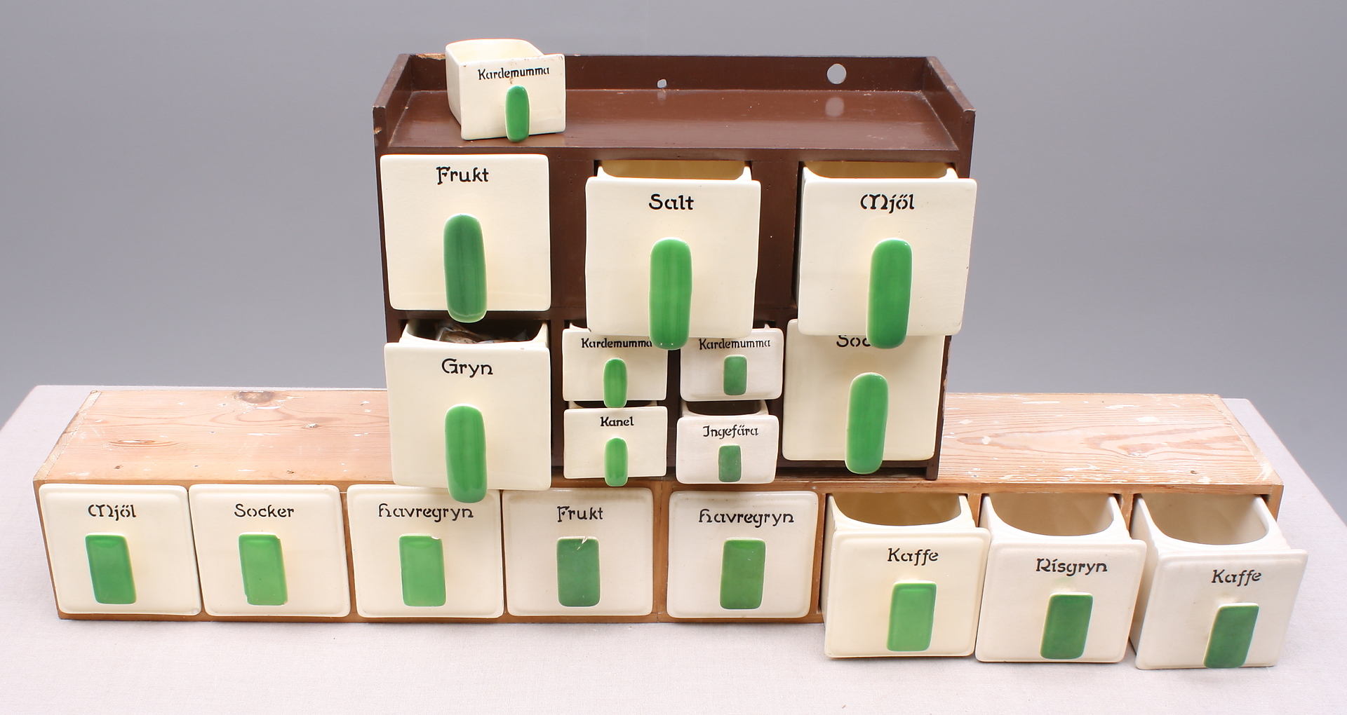 120499. GEWÜRZREGAL, 2 Stück, Holz, Keramik.