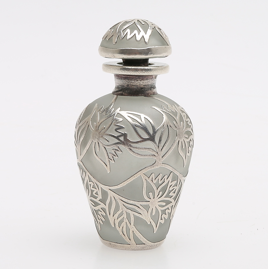 1208825. PARFUMFLASCHE, Glas mit Silberdekor, gemarkt "JBD".