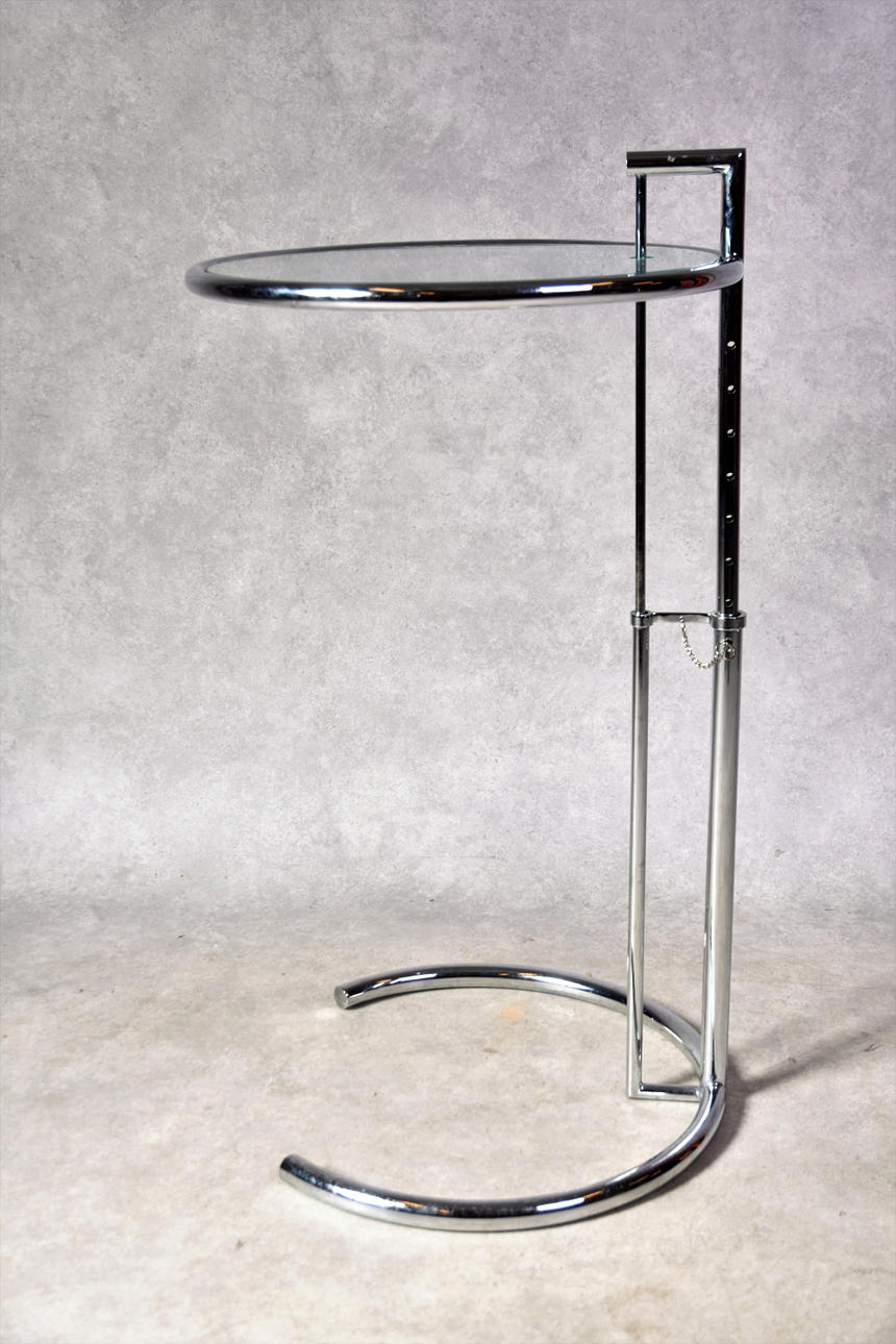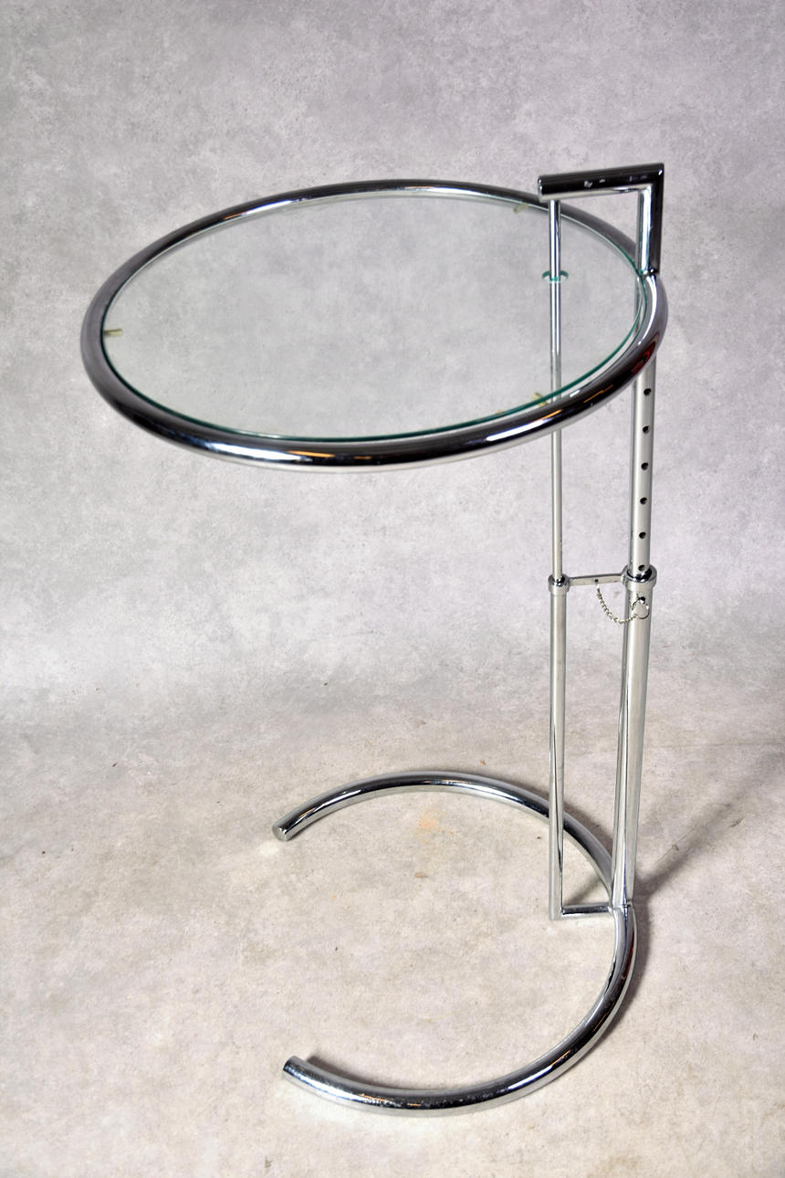 1210761. TISCH MIT GLASPLATTE nach Eileen Gray.