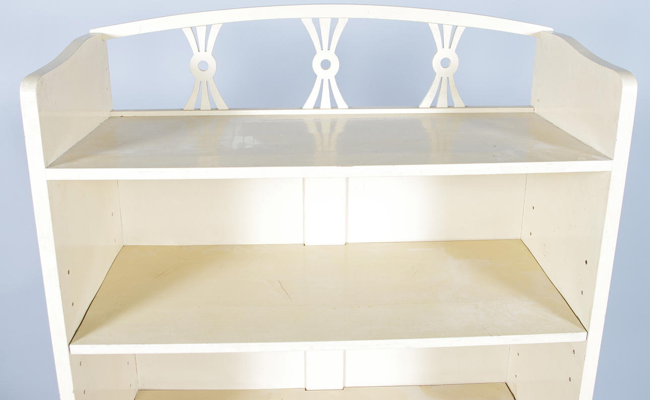 121321. BÜCHERREGAL, weiß lackiert, Jugendstil.