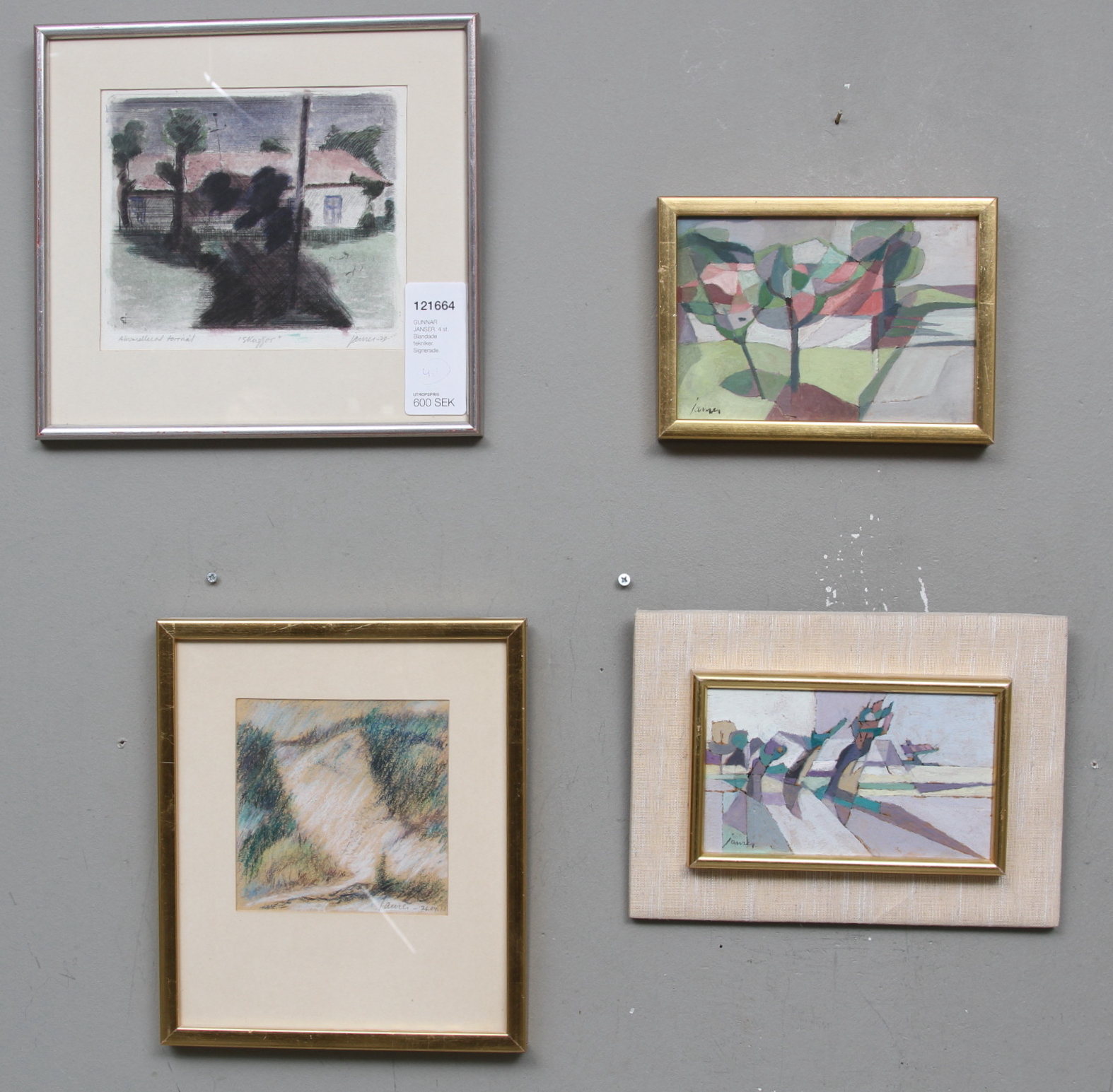 121664. GUNNAR JANSER. 4 st. Mischtechniken. Unterzeichnet.