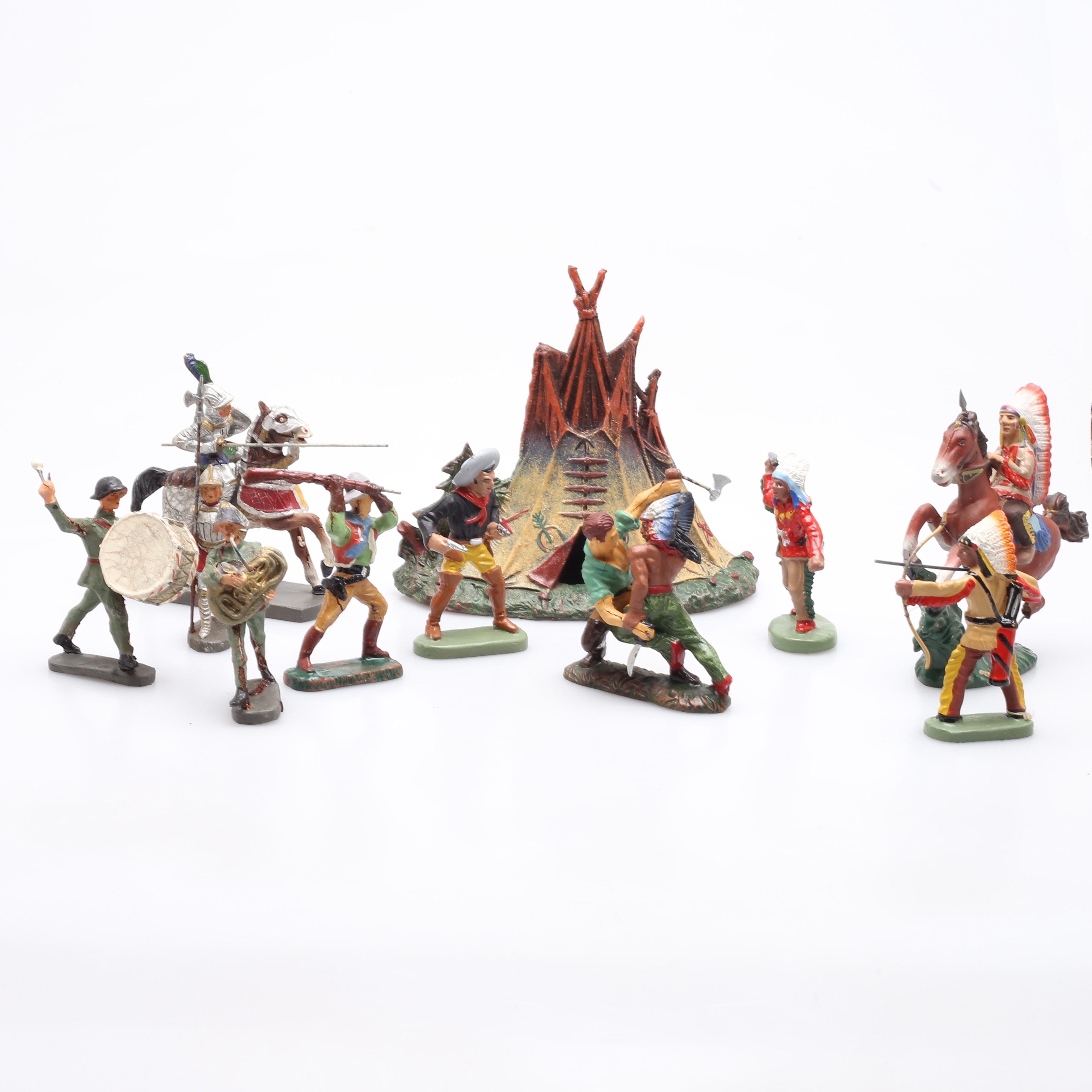 1217435. FIGUREN und Zelt, 11 Stück, Elastolin und Leyla.
