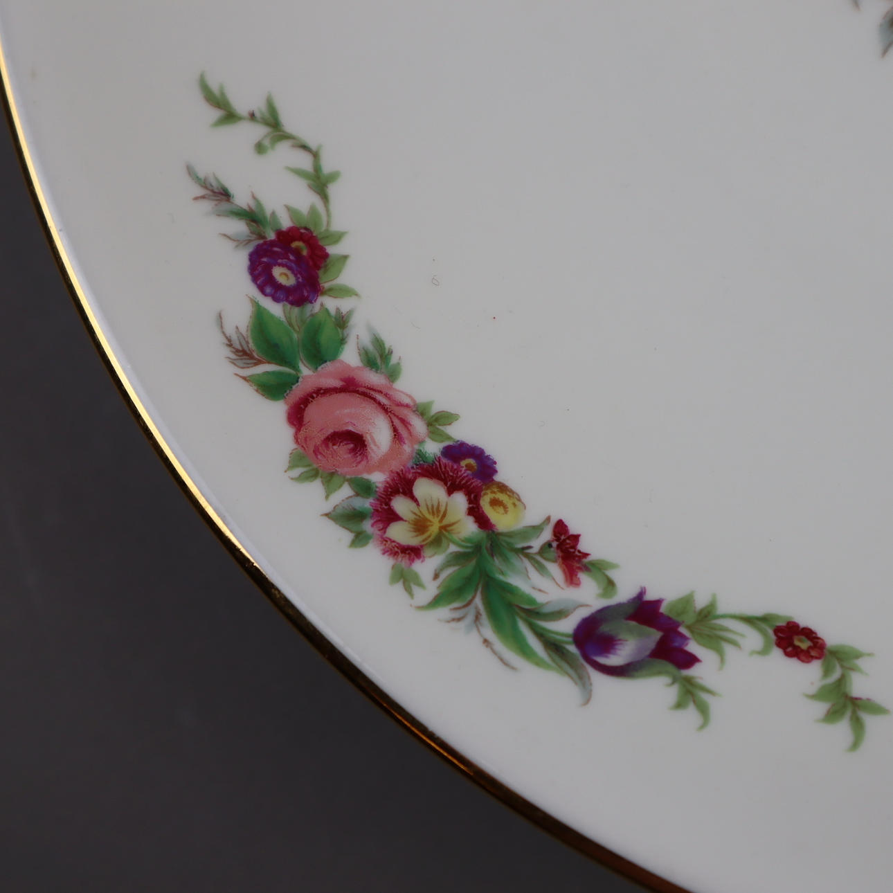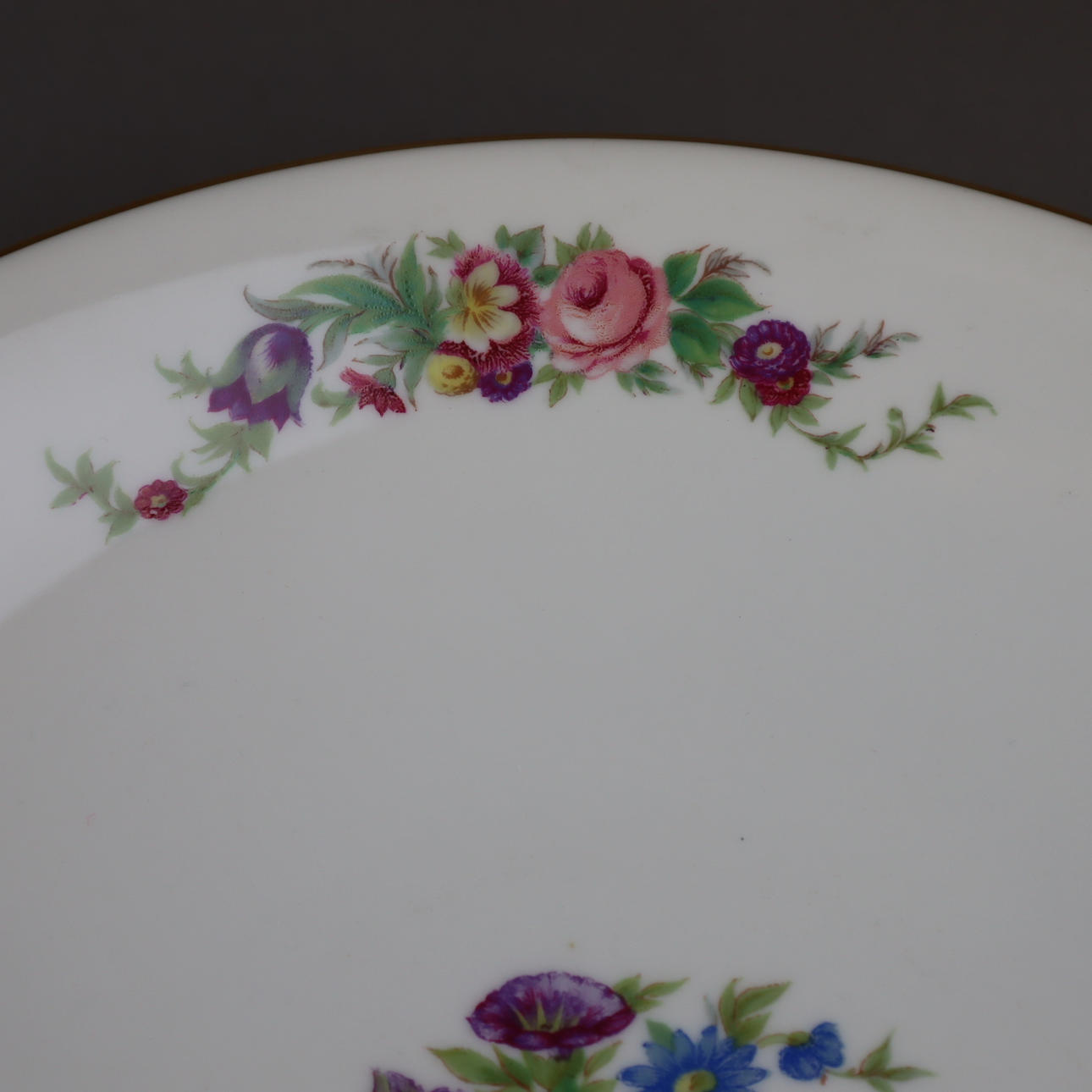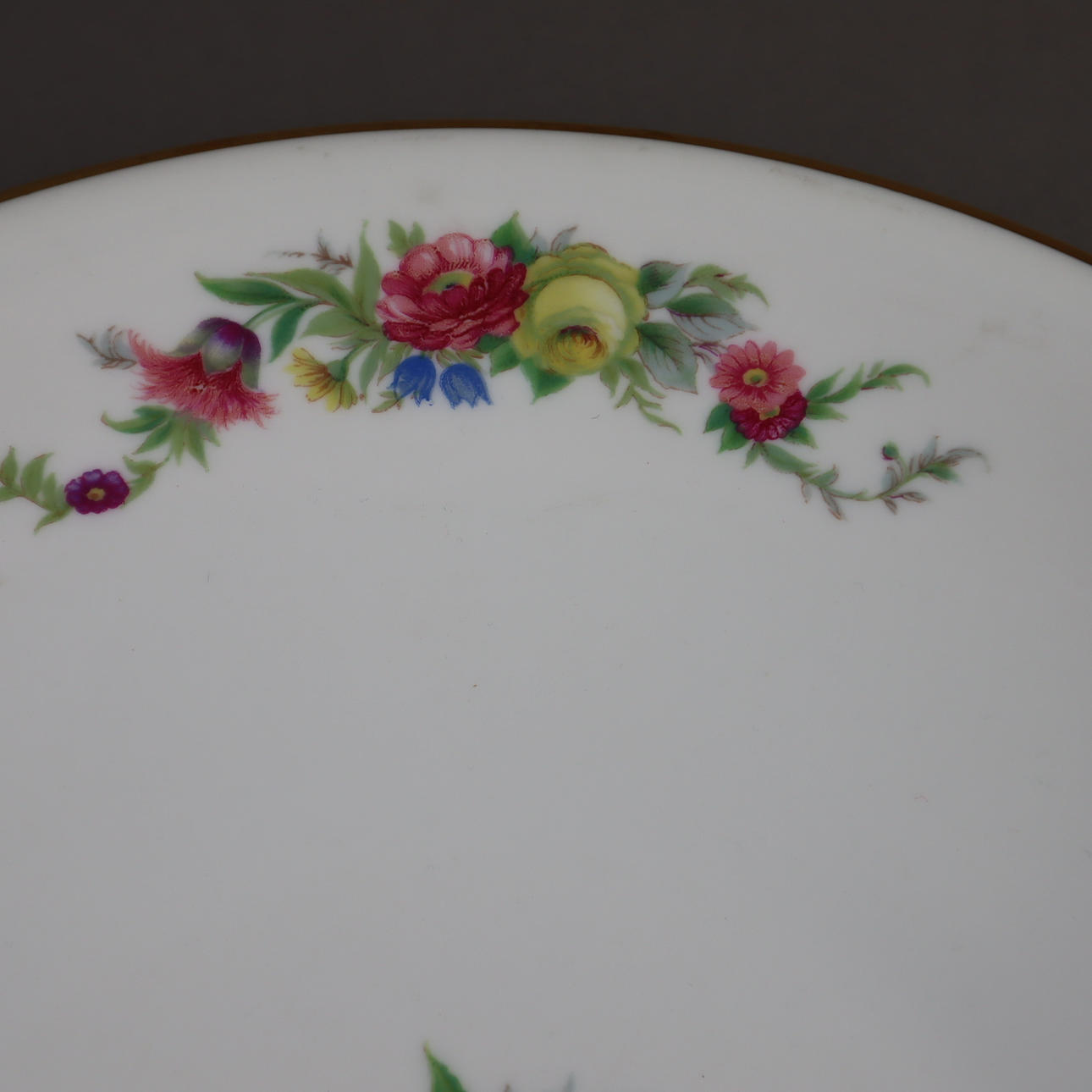 Teller - Johann Haviland Bavaria, gemuldeter runder Teller, polychromer Blumendekor, Goldrand, D.ca.29,5cm.
