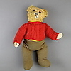 Teddy - Petz, Brustknopf, Glasaugen, spitzer Schnauze, mit Bekleidung,H.ca.25cm.