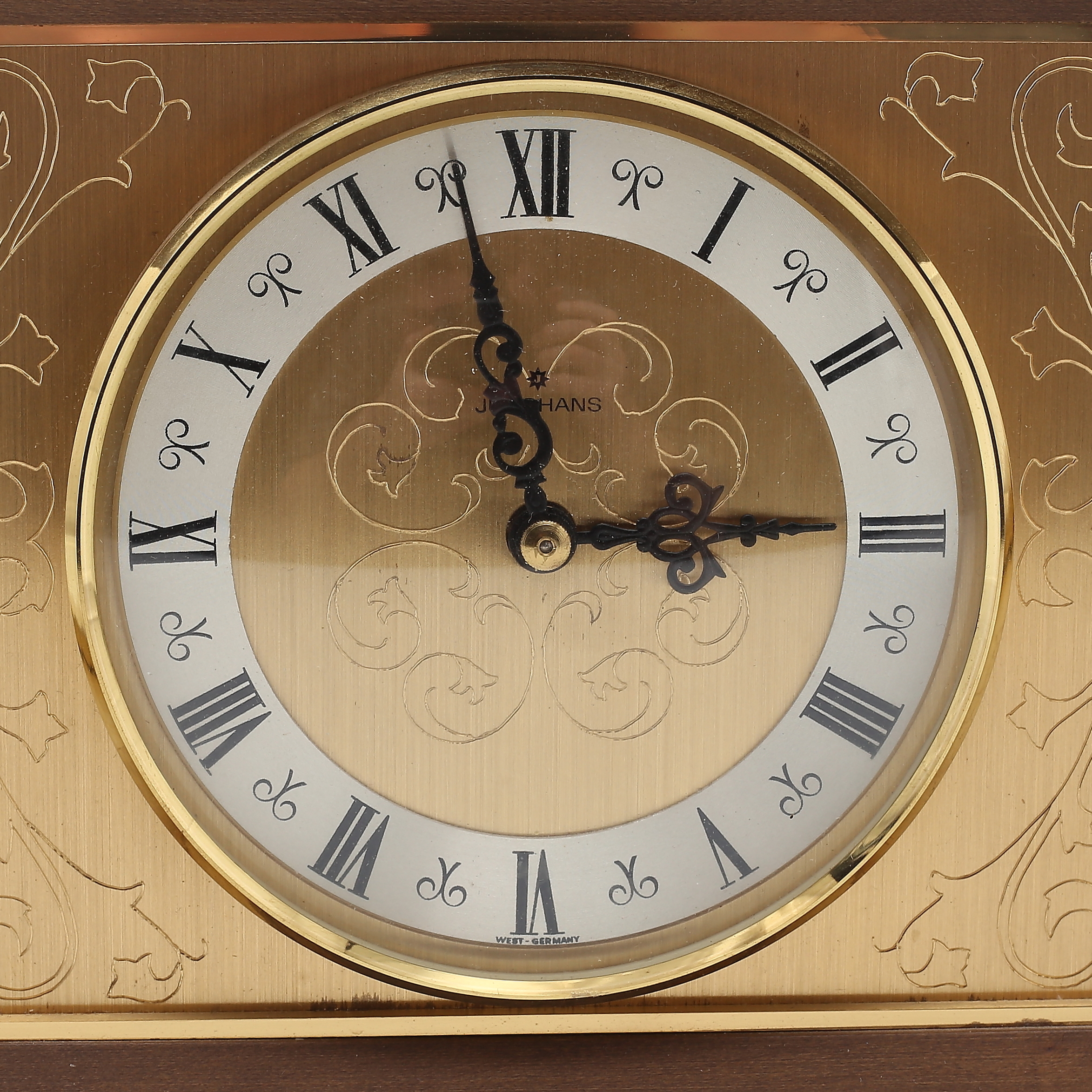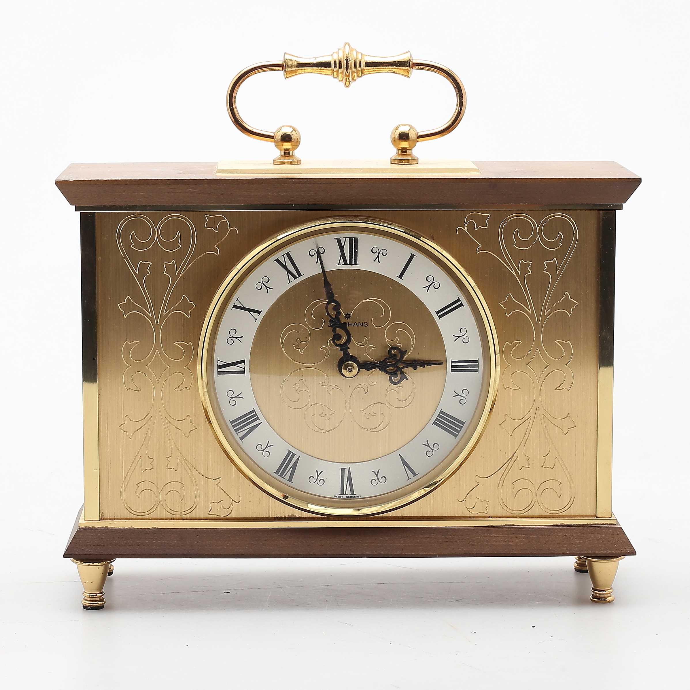 1223738. TISCHUHR, Holz und Metall, Junghans, 1900.