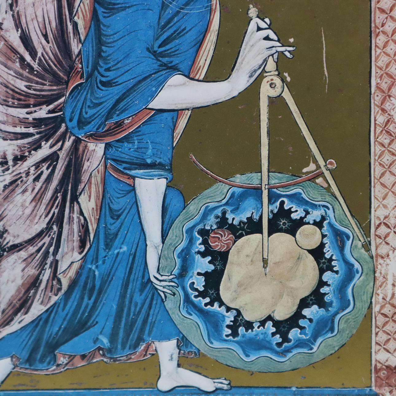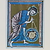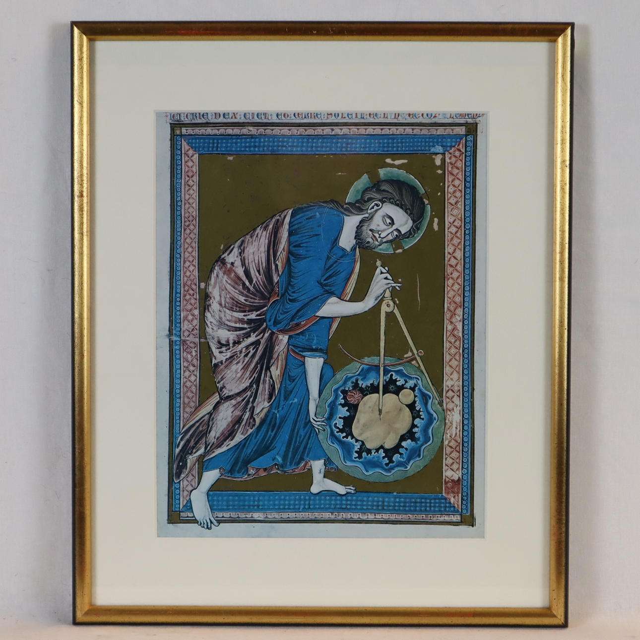 "Schöpfergott" - Farbdruck nach dem Original von 1220/30 (Wien, Österreichische Nationalbibliothek), Darstellung von Christus als Weltschöpfer