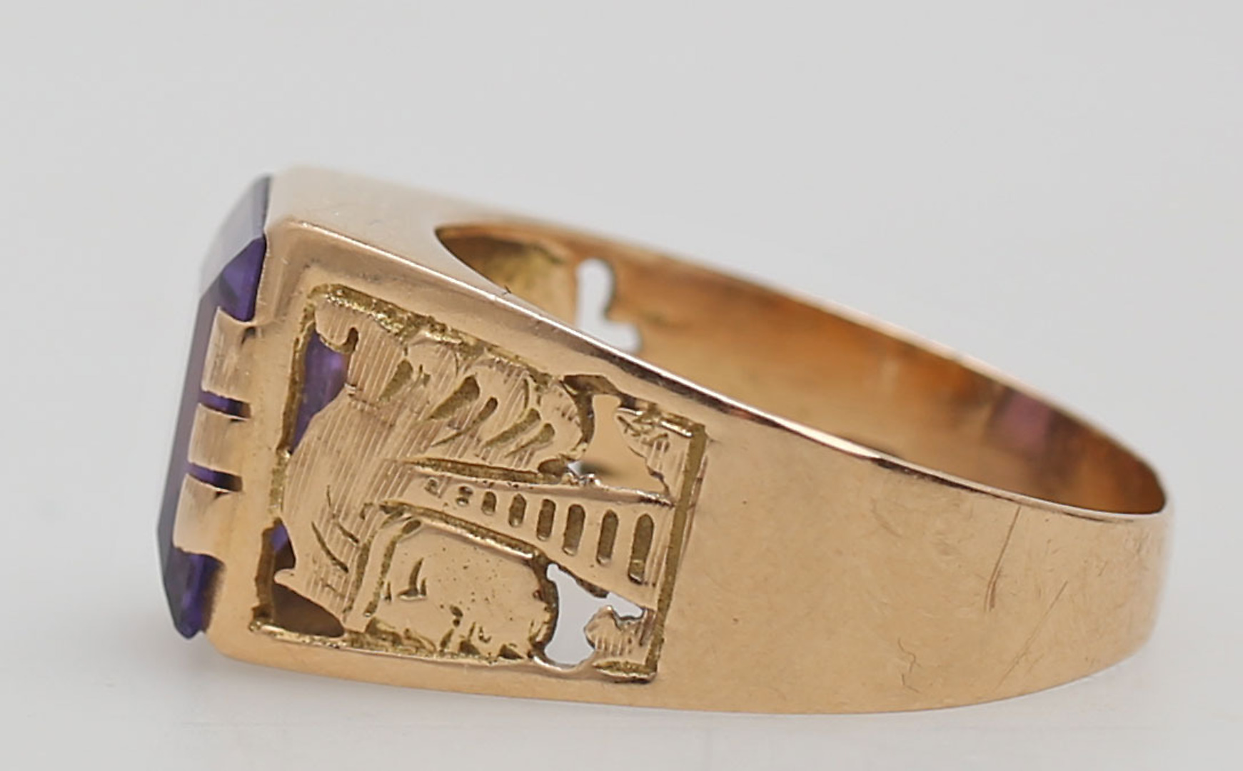 122872. RING MIT LILA STEIN, Rotgold, 18K.