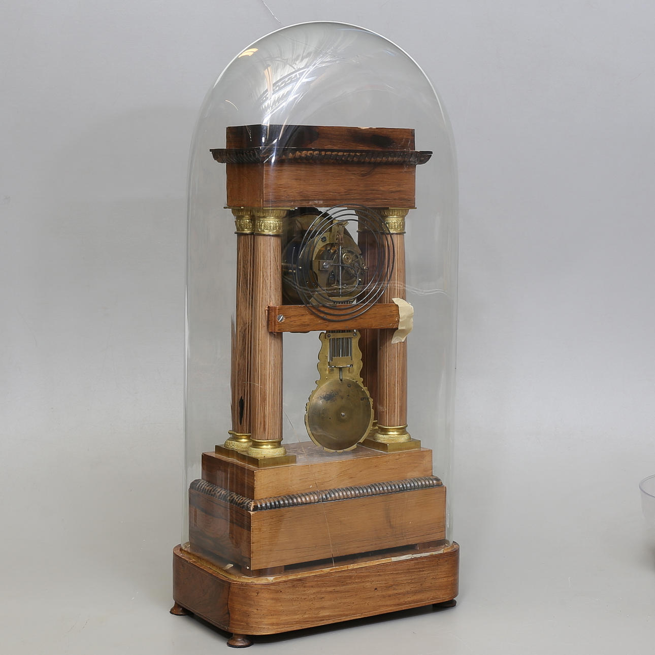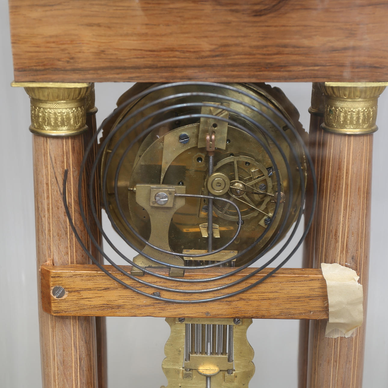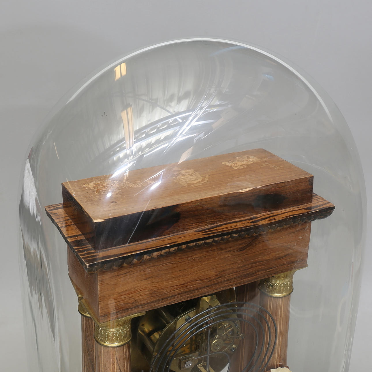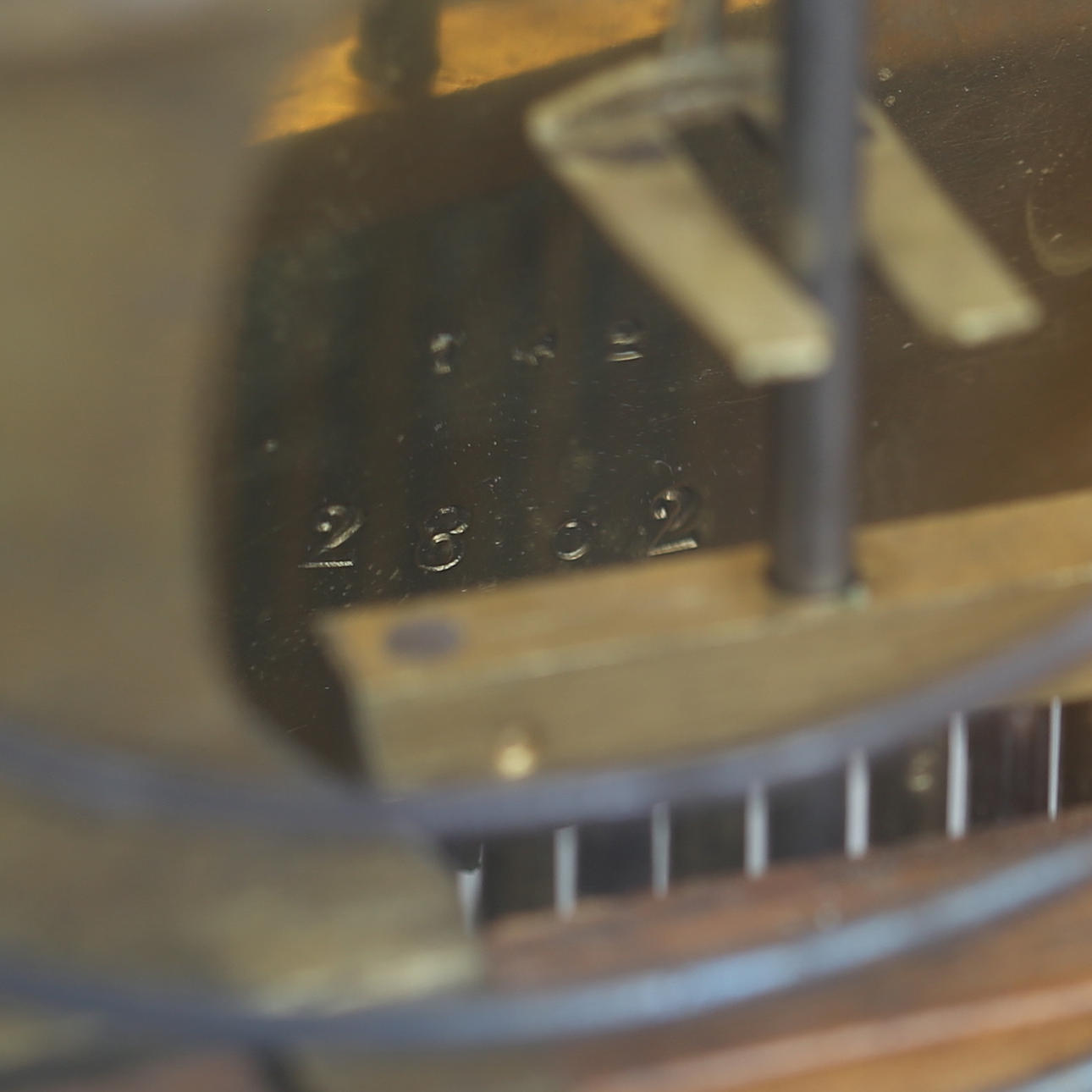 Gesprungenes Glas, Gebrauchsspuren in der Halterung, Farbabrieb.