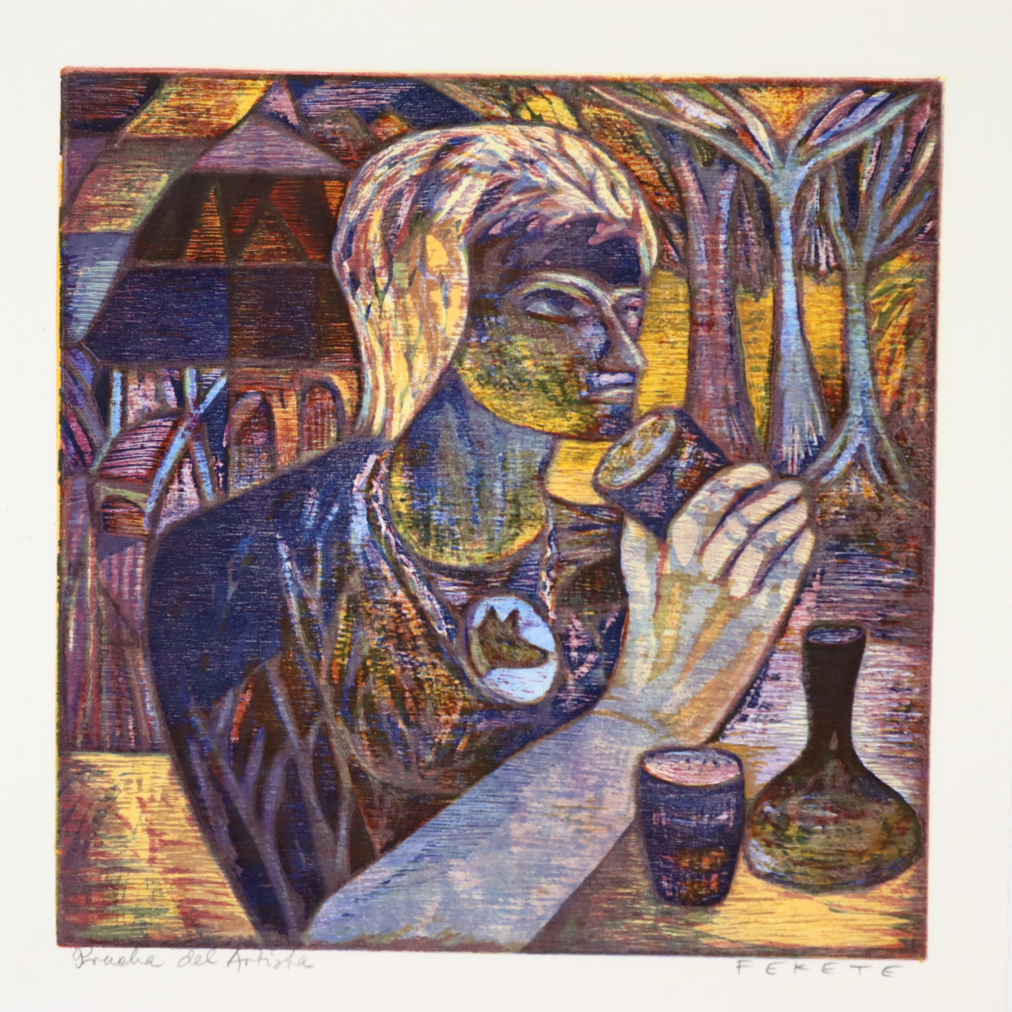 1236504. FEKETE, ESTEBAN. signierter Farbholzschnitt.