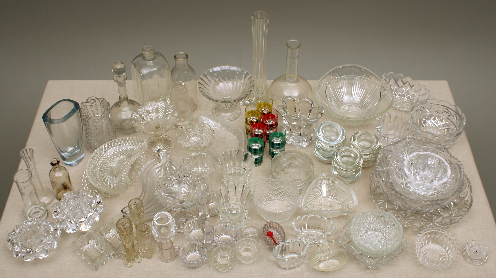 123659. GLASOBJEKTE, 78 Stück, Vasen, Gläser, Schalen, Laternen, Karaffen.