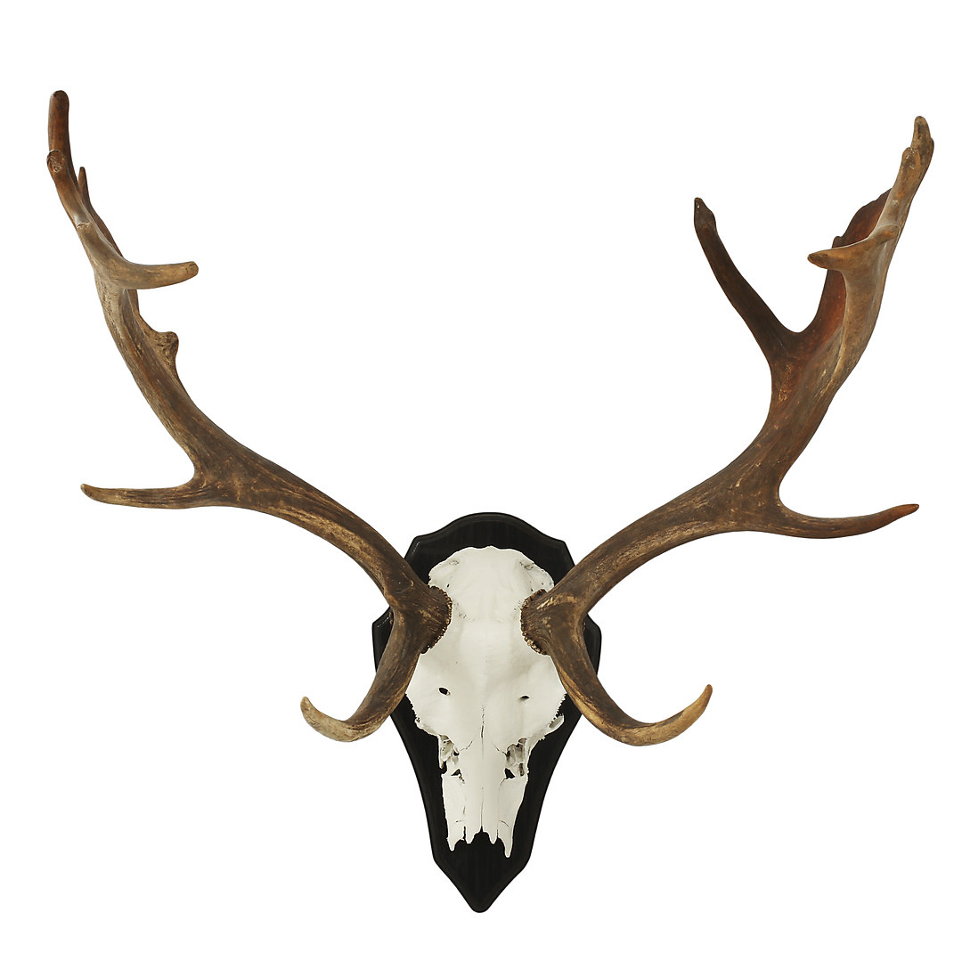 124348. DEEP DEER HORN, montiert auf einem Holzbrett.