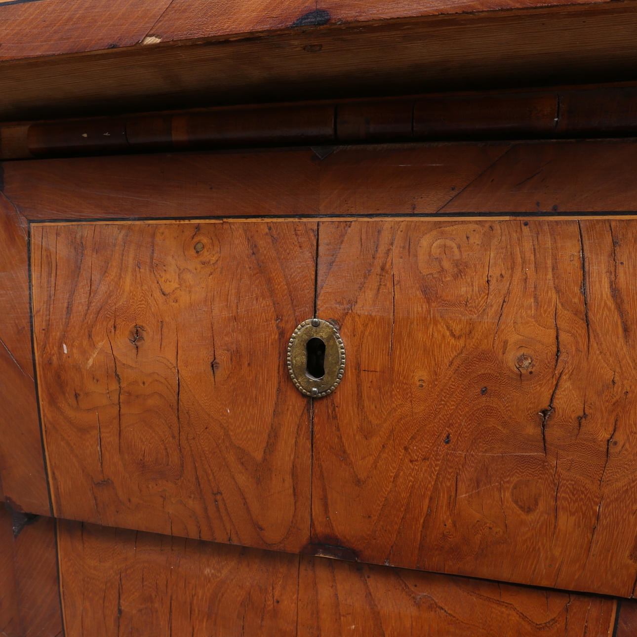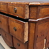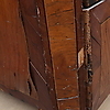 Umfangreiche Schäden, Risse, Verschleiß. Schloss der obersten Schublade locker. Stark renovierungsbedürftig.