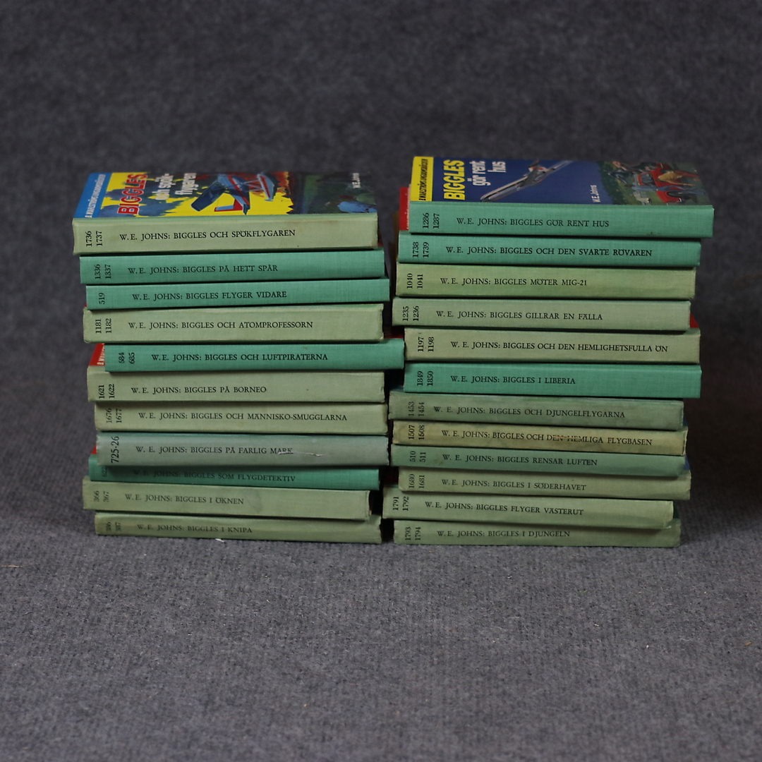 1248148. BÜCHER, 37+9 Stk., Biggles, B. Wahlströms Ungdomsböcker.