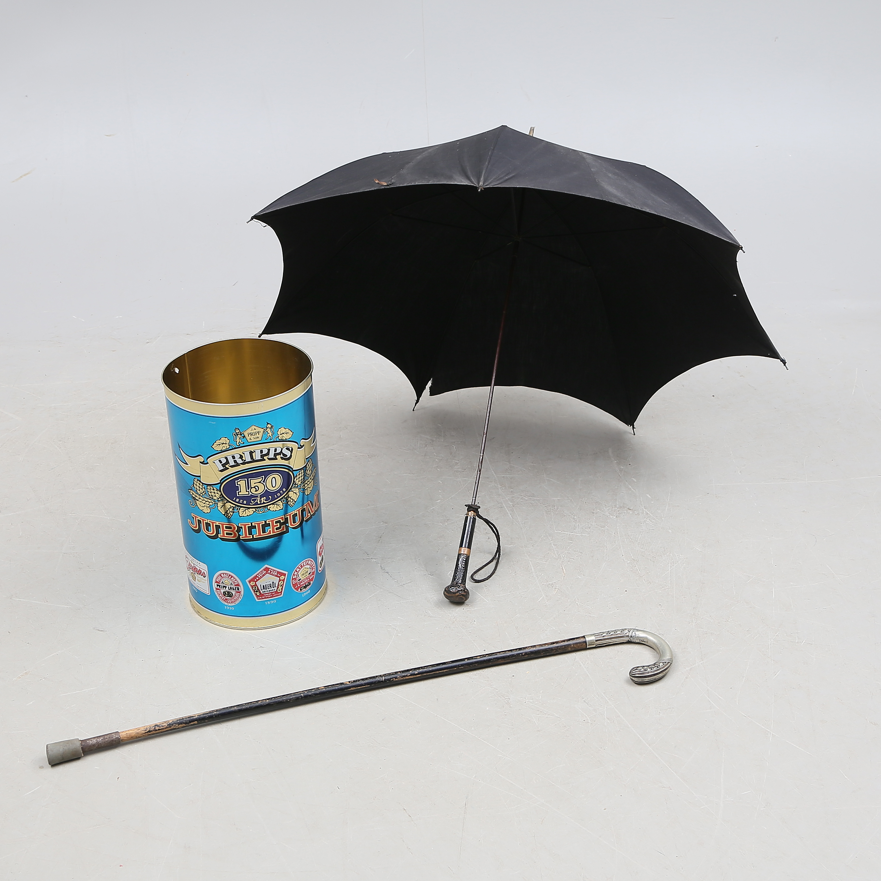 1252747. SILBERNE Krücken, Regenschirm und Ständer, 1900er Jahre.