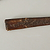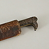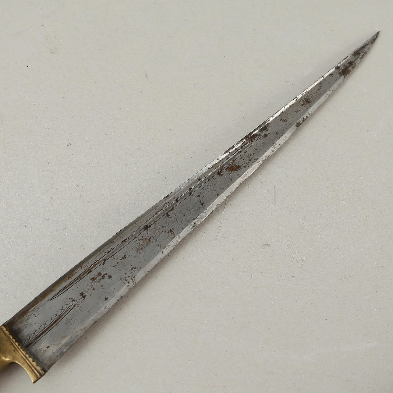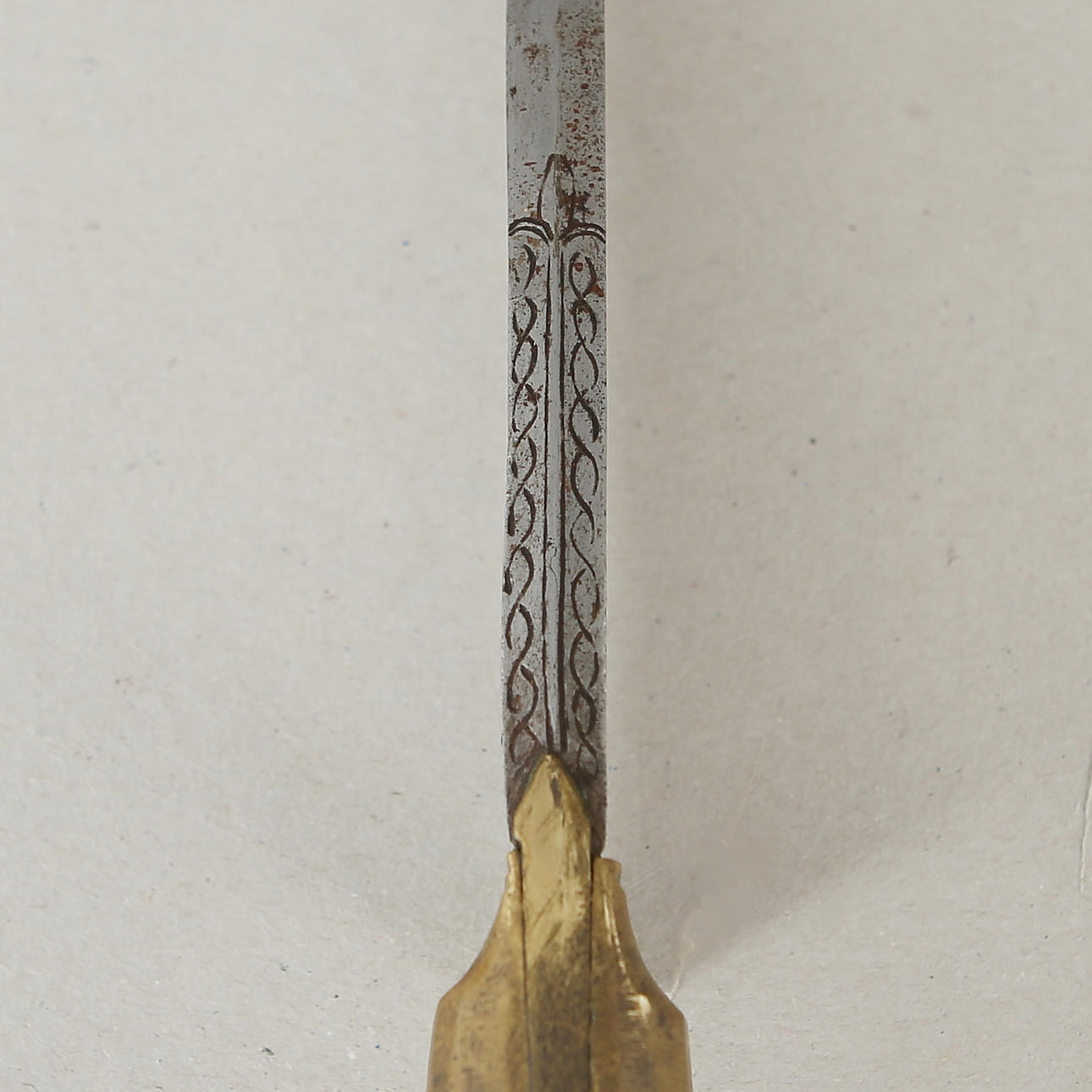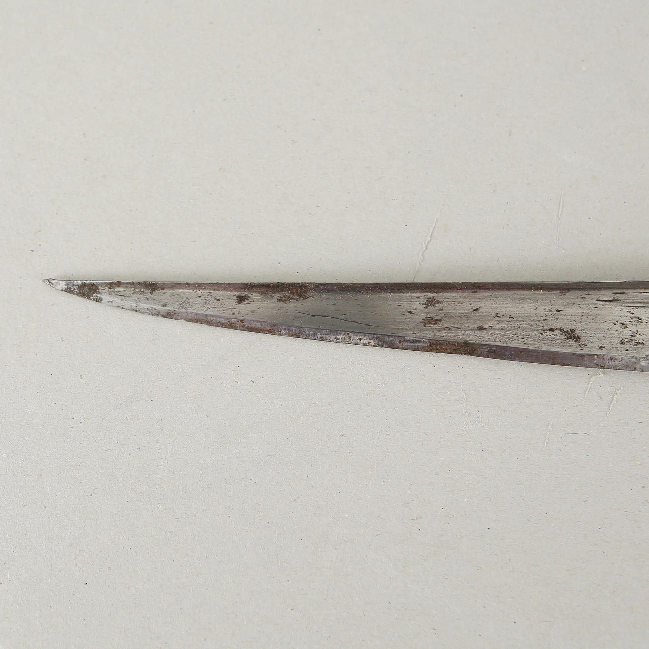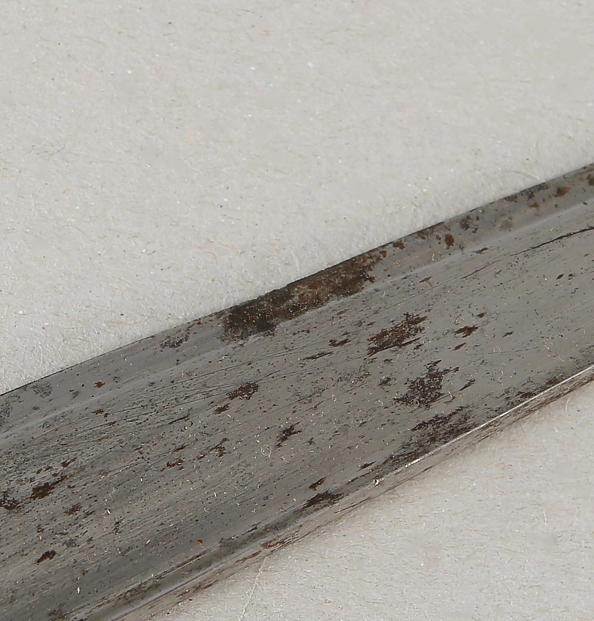 Tragen, kleinere Beschädigungen, Klinge mit einer kleinen Kerbe und stellenweise anlaufen. Wanne mit Schäden, Reparaturen.