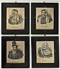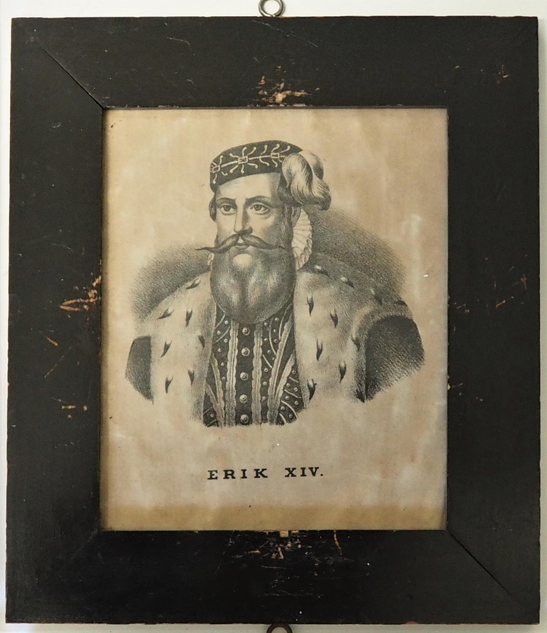 Gustaf I, Erik XIV, Johan III, Fredrik I. Bildmaße 16 x 13 cm, gesamt mit Rahmen 23,5 x 20,5 cm.