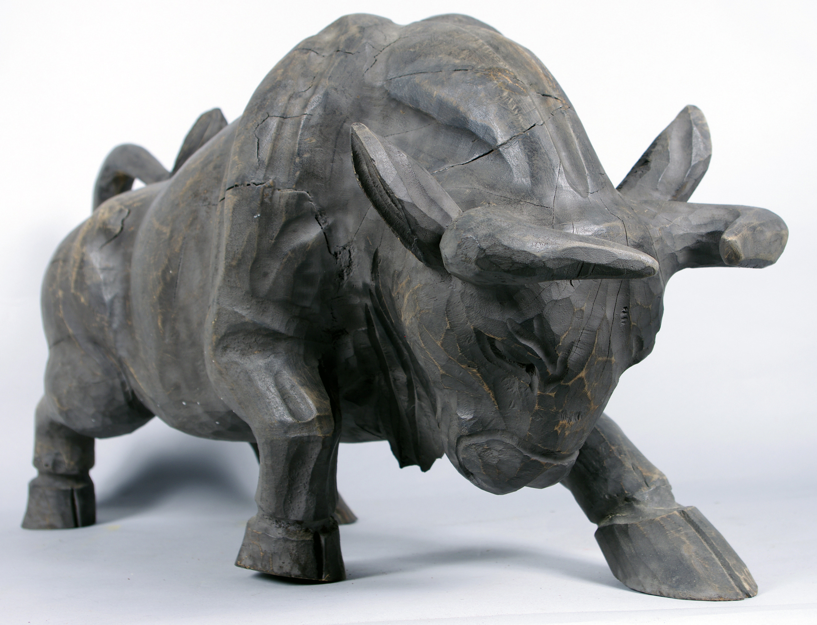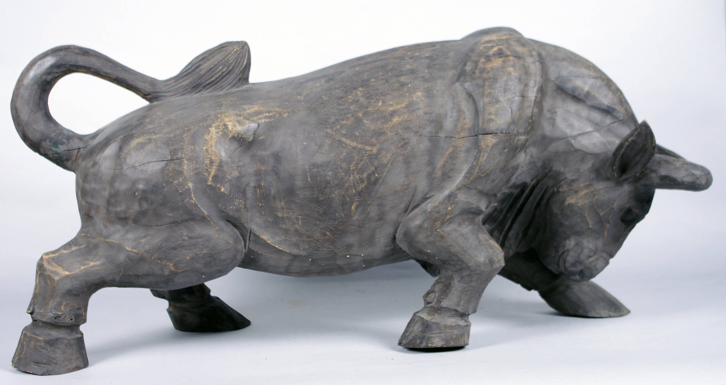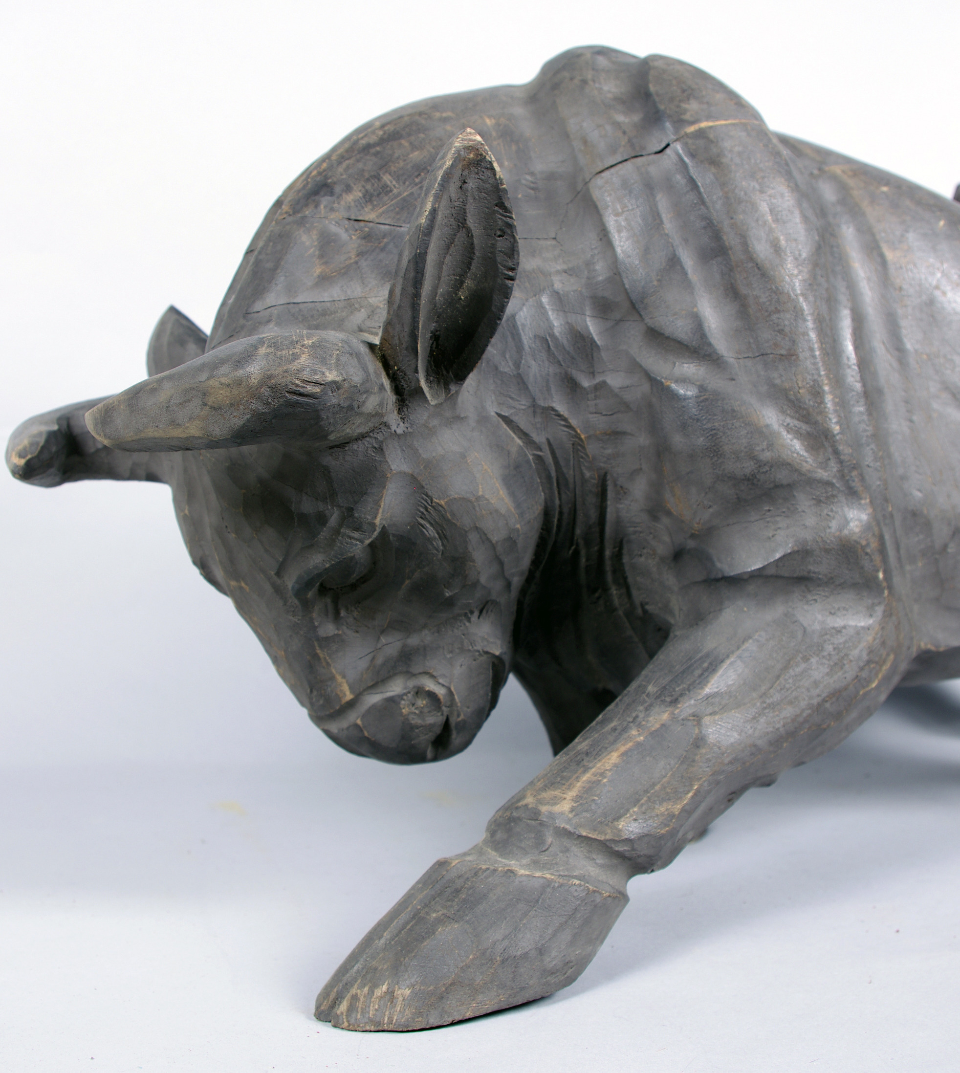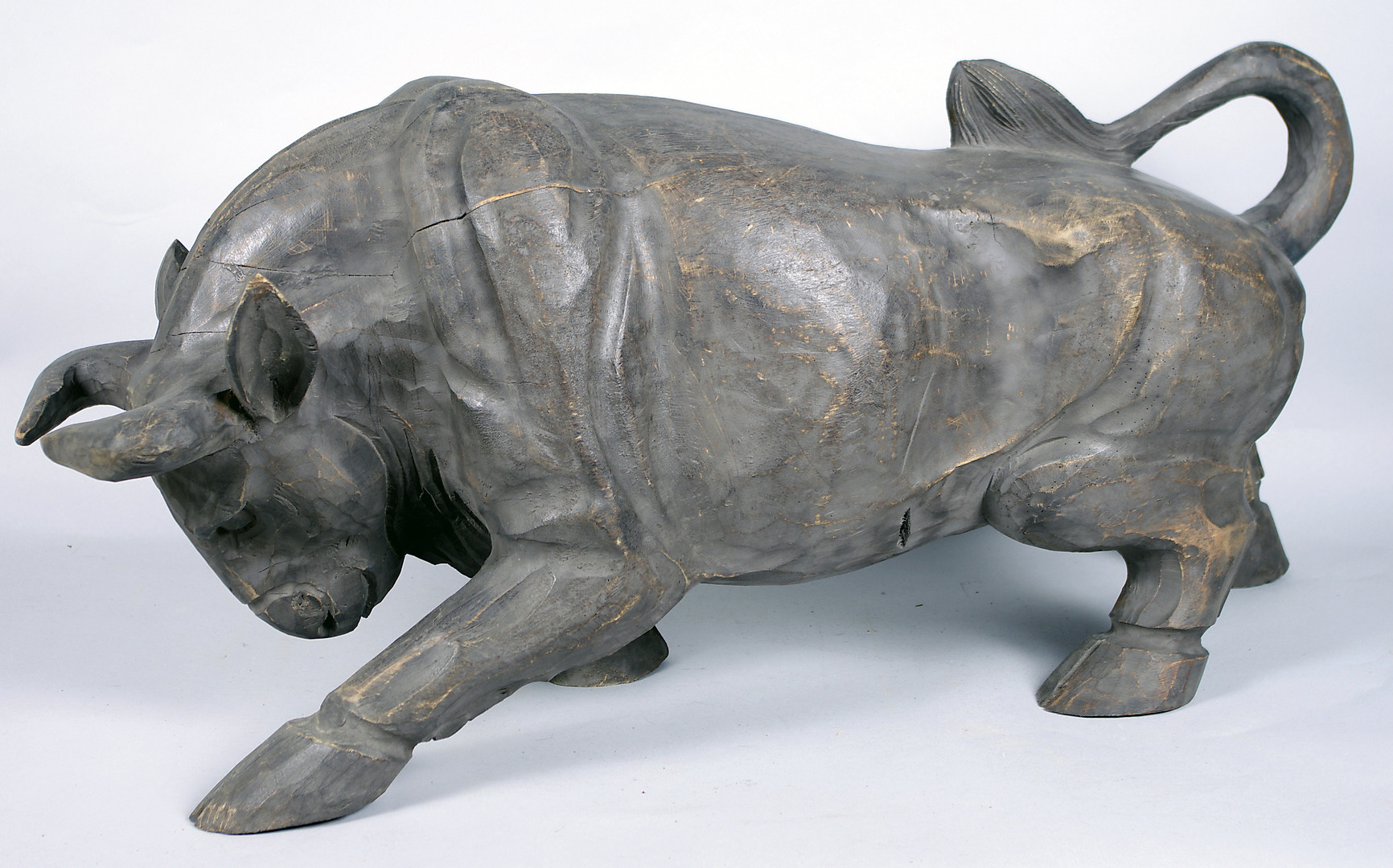125688. SKULPTUR, Stier, bemaltes Holz.