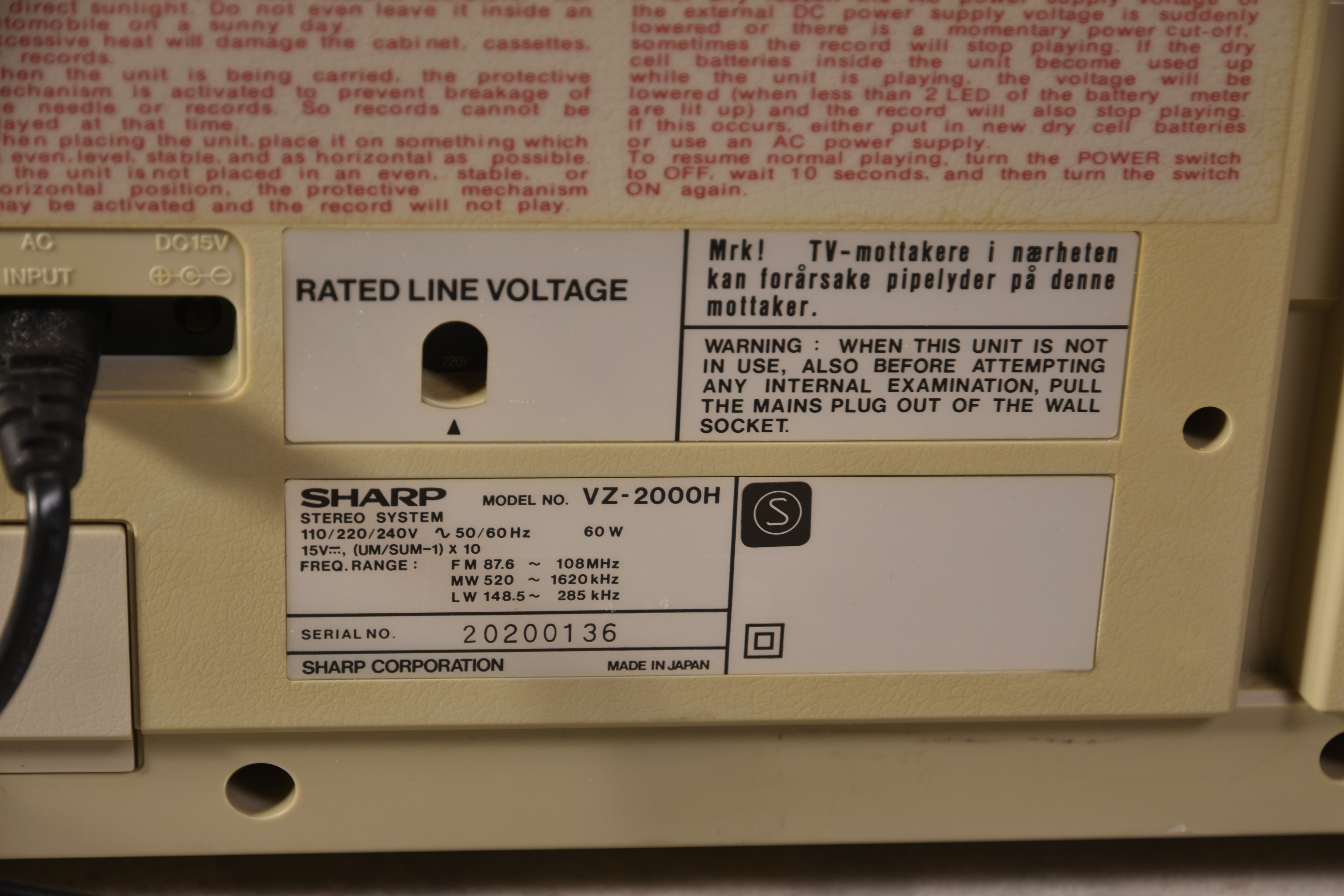 1257964. Plattenspieler, Kassettendeck, Sharp VZ 2000 H.