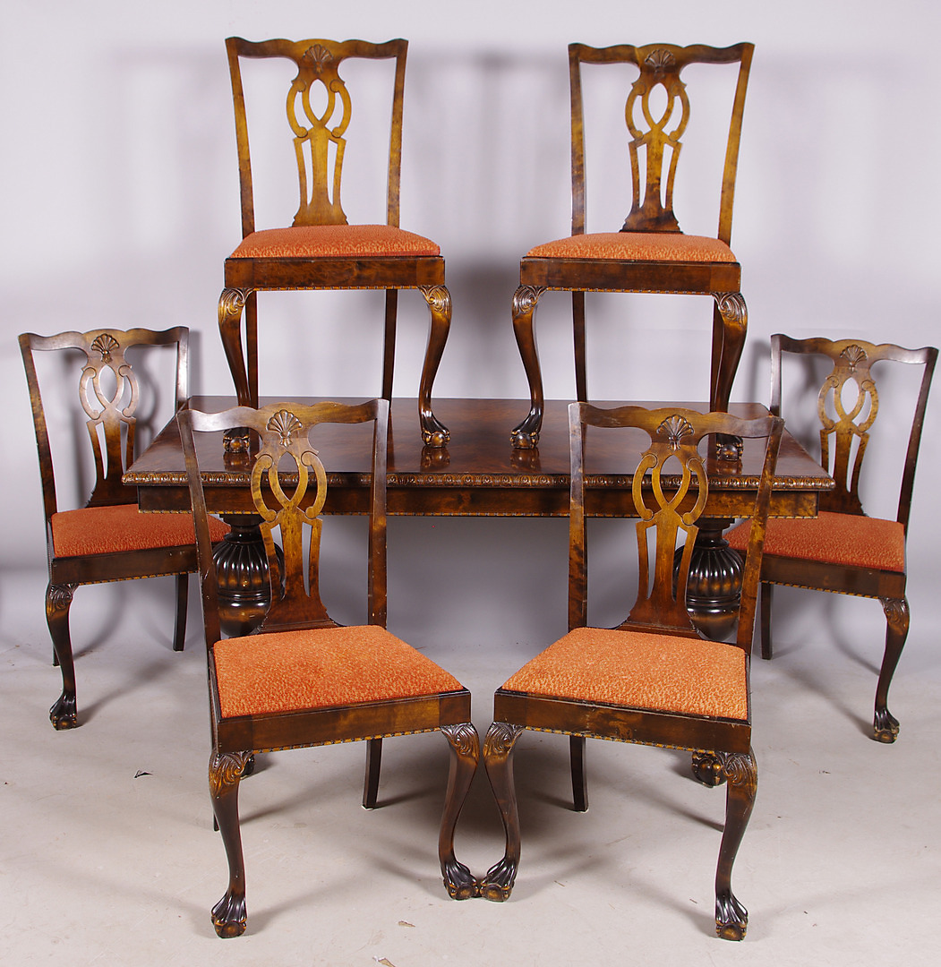 125867. ESSGRUPPE, polierte Birke, Chippendal-Stil.
