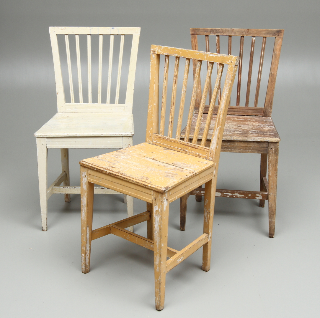 12623. SPIELSTÜHLE 3 Stück, erste Hälfte des 19. Jahrhunderts.