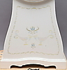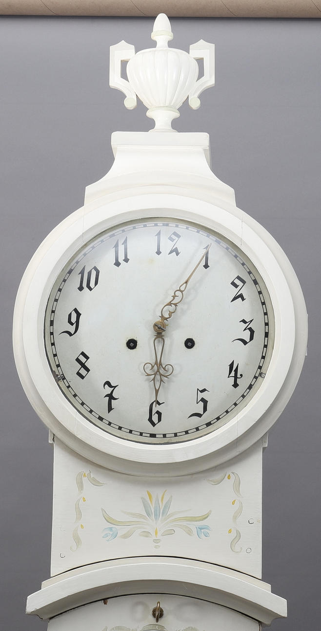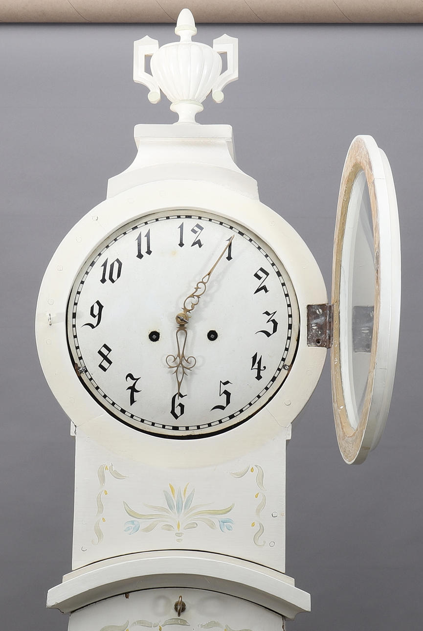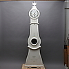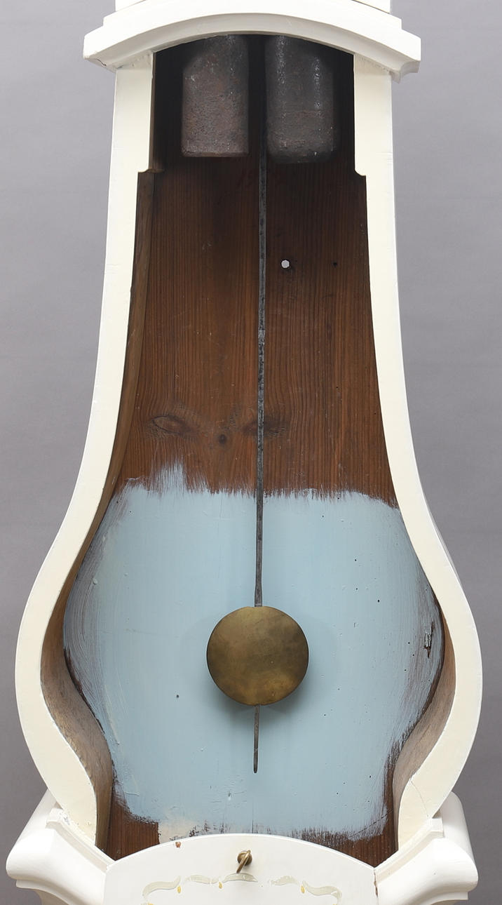 Uhrwerk und Schlagwerk funktionieren, müssen aber überholt werden, da der Minutenzeiger locker ist. Maskenzunge zurück. Lackabrieb und Verschleiß.