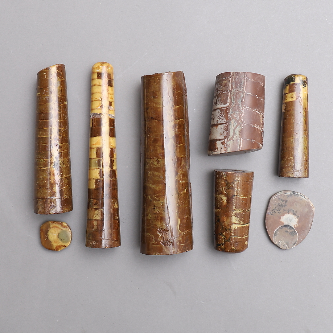 1268497. FOSSILIEN, 6+2 Stück, Orthokeratite.