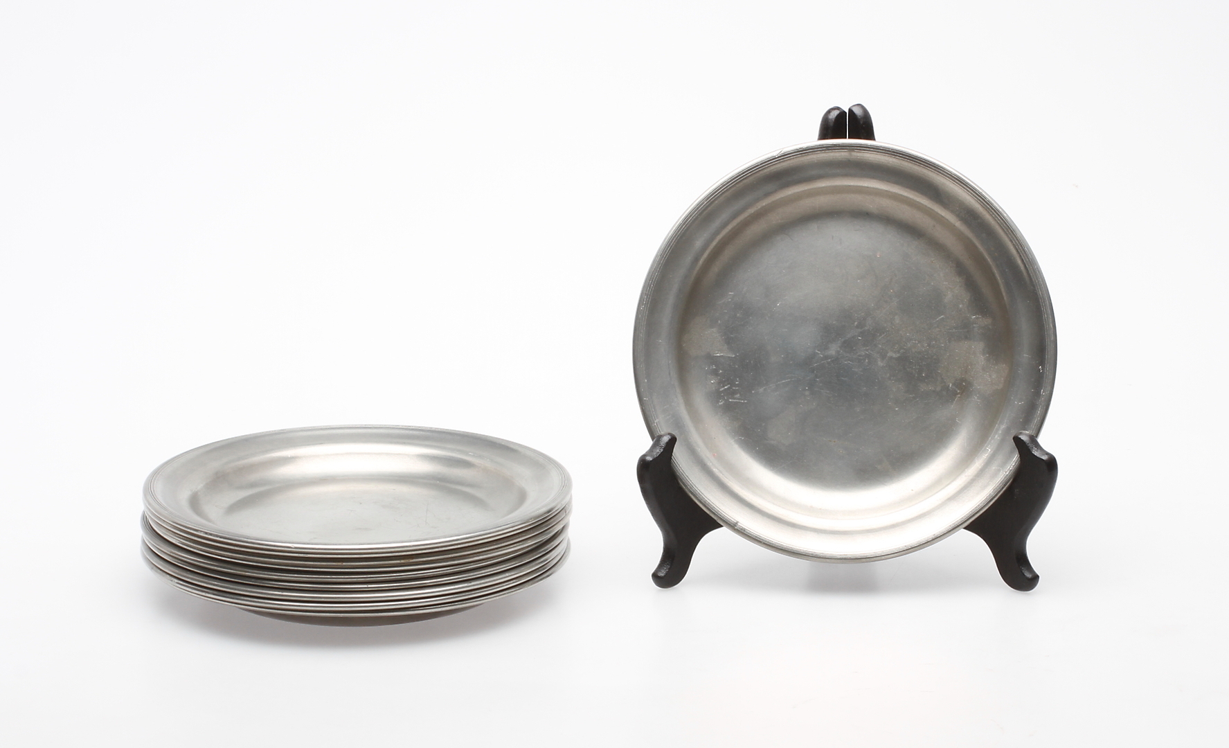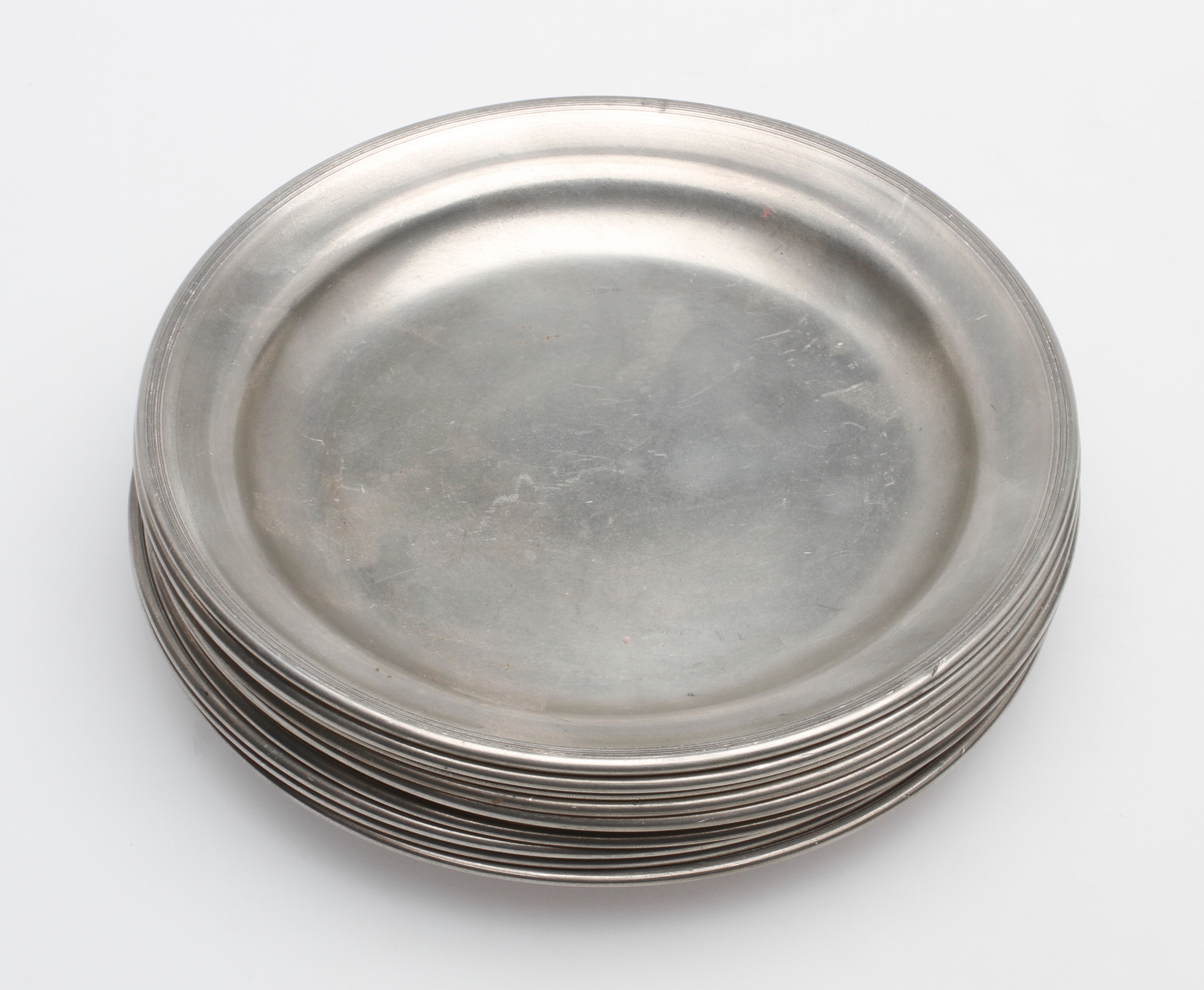 127002. UMSCHLAGTELLER, 10 Stück, Zinn, Meißel Nyköping.