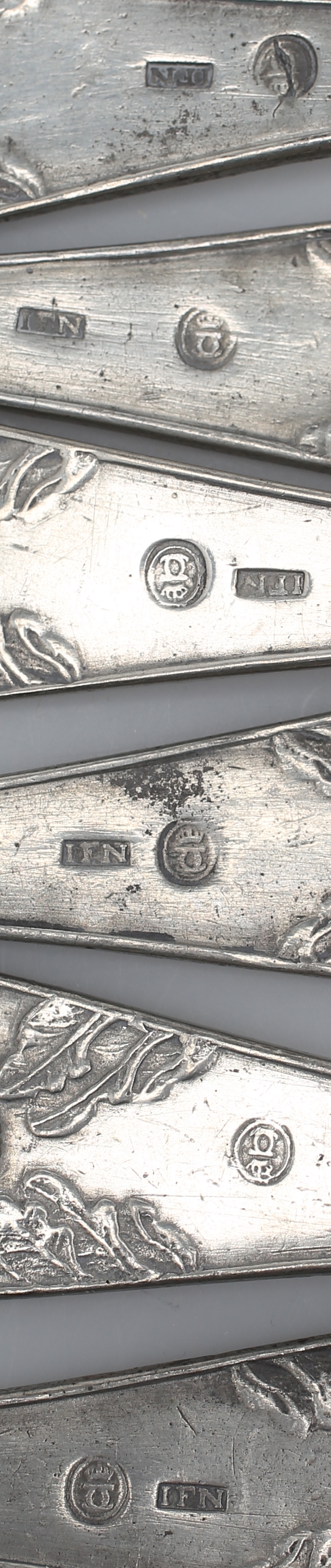 127008. JOHAN FREDRIK NORRMAN (1839-1856). Esslöffel in Dose (6). Gemarkt IFN CC mit Krone (Karlskrona).