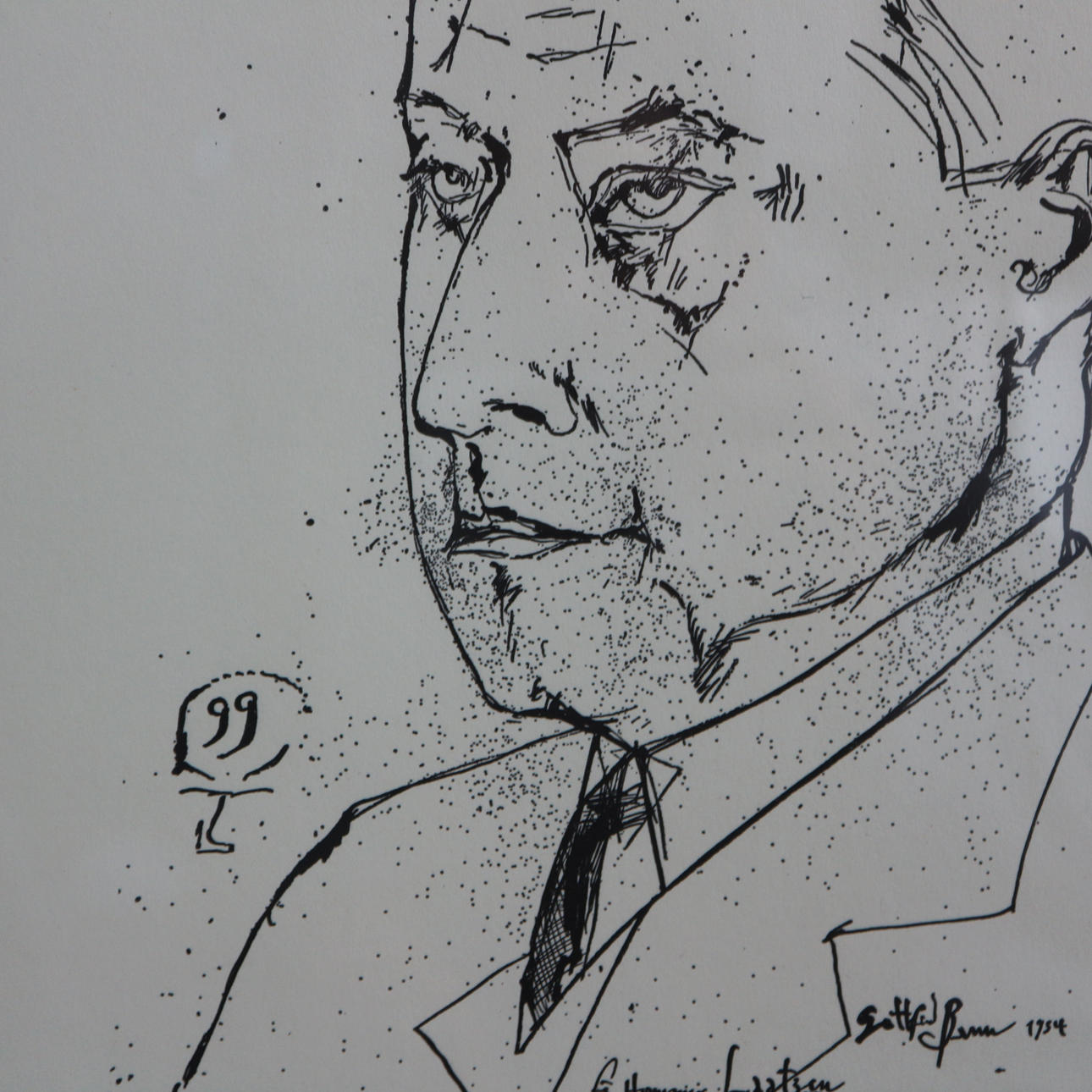 HORST JANSSEN. PORTRAIT GOTTFRIED BENN LITHOGRAPHIE.