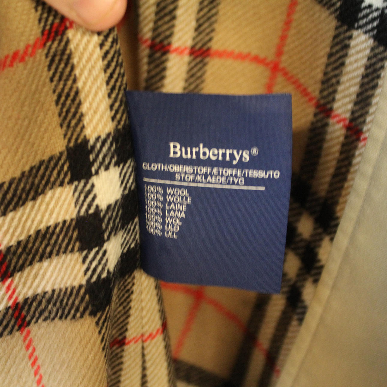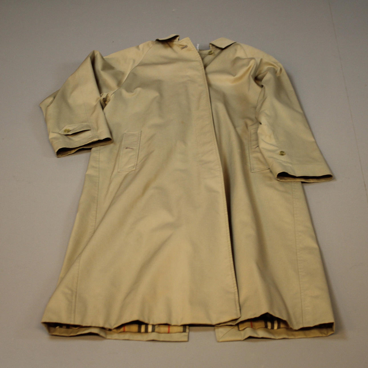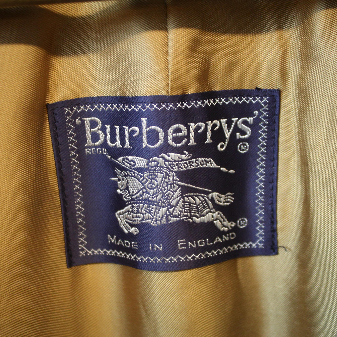 Größenetikett C15, herausnehmbares Futter, gekennzeichnet mit „Burberrys' MADE IN ENGLAND“.